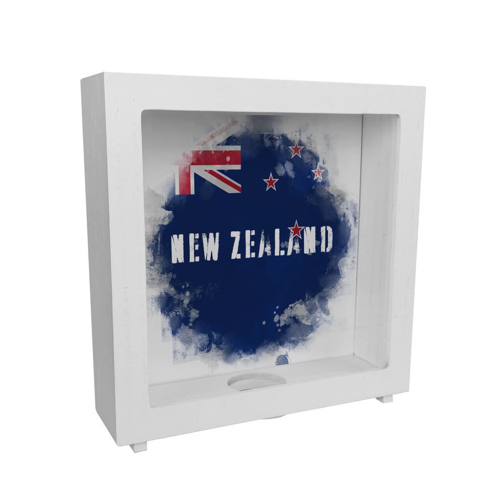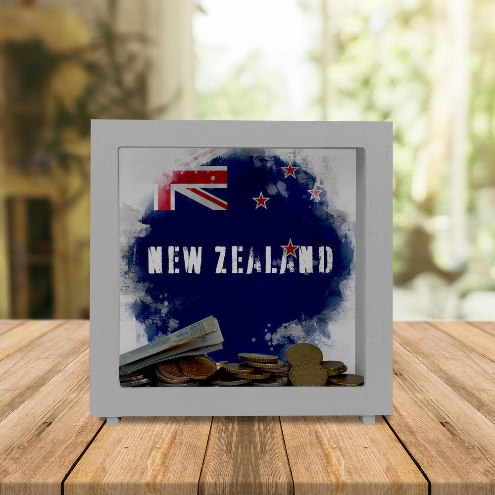 - 1x Spardose mit Neuseeland-Flagge im Used Look - Sparschwein für Urlauber in der gewählten Ausführung