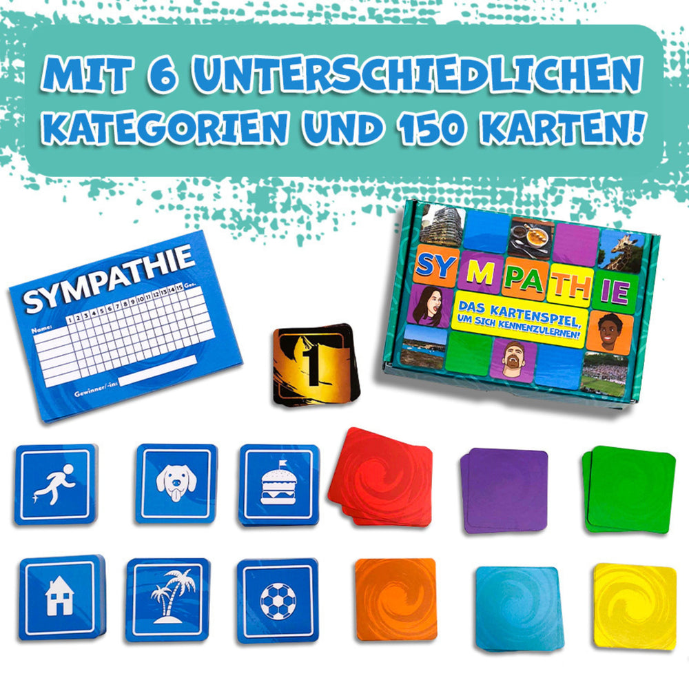 Das Sympathie Kartenspiel ist eine ausgezeichnete Wahl sowohl als Geschenk oder für den Eigenbedarf. Das innovative Konzept des Spiels wirkt auf zwei Ebenen: Es ermöglicht sowohl unterhaltsamen Zeitvertreib, als auch das Kennenlernen der eigenen Freunde und Familie auf einer tieferen, persönlicheren Ebene. Daher macht es sich hervorragend als Geschenk zu Geburtstagen oder anderen besonderen Anlässen, ist aber ebenso gut für gemütliche Spielabende zu Hause geeignet. Das Produkt lässt sich nahezu überall verwenden. Ob zu Hause, im Park oder auf Reisen – die handliche Box mit praktischer Transportmöglichkeit lässt das Spiel leicht verstaubar sein und ist mit seinen 150 Foto-Karten dennoch sehr umfangreich. So wird jeder Spielmoment zum Erlebnis voller Überraschungen und interessanter Einsichten in die Gedankenwelt der Mitspieler. Es ist nicht schwer sich vorzustellen, wie die Augen der Beschenkten aufleuchten, wenn sie das Sympathie Kartenspiel erstmalig in den Händen halten oder auspacken. Es sind Freude und Neugierde, gepaart mit spannender Vorfreude auf lustige und überraschende Spielrunden. Als Schenkender will man neben der Freude am Spiel natürlich auch Raum für echte zwischenmenschliche Begegnungen ermöglichen und schafft so gemeinsame, bleibende Erinnerungen. Einer der vielen Vorteile dieses Spiels besteht darin, dass es mehr bietet als traditionelle Brett- oder Kartenspiele: Hier geht es um persönliche Interaktion und tiefgründiges Kennenlernen. Die Spieler müssen sich in die Gedankenwelt der anderen hineinversetzen und so auf einer tieferen Ebene kommunizieren. Das bringt nicht nur Spaß, sondern stärkt auch das Verständnis und die Sympathie für die Mitspieler. Das Sympathie Kartenspiel mit seinen 150 ansprechenden Foto-Karten aus 6 unterschiedlichen Kategorien, ist ein hervorragendes Medium, um Zusammenkünfte jeglicher Art zu bereichern. Mit seinem einzigartigen Konzept bietet es einen doppelten Mehrwert: unterhaltsamen Spielspaß und die Möglichkeit, die eigenen Freunde und Familie auf neue, überraschende Art kennenzulernen. Ein Spiel, das Freundschaften belebt, Tiefgang schafft und zugleich viel Spaß bereitet!