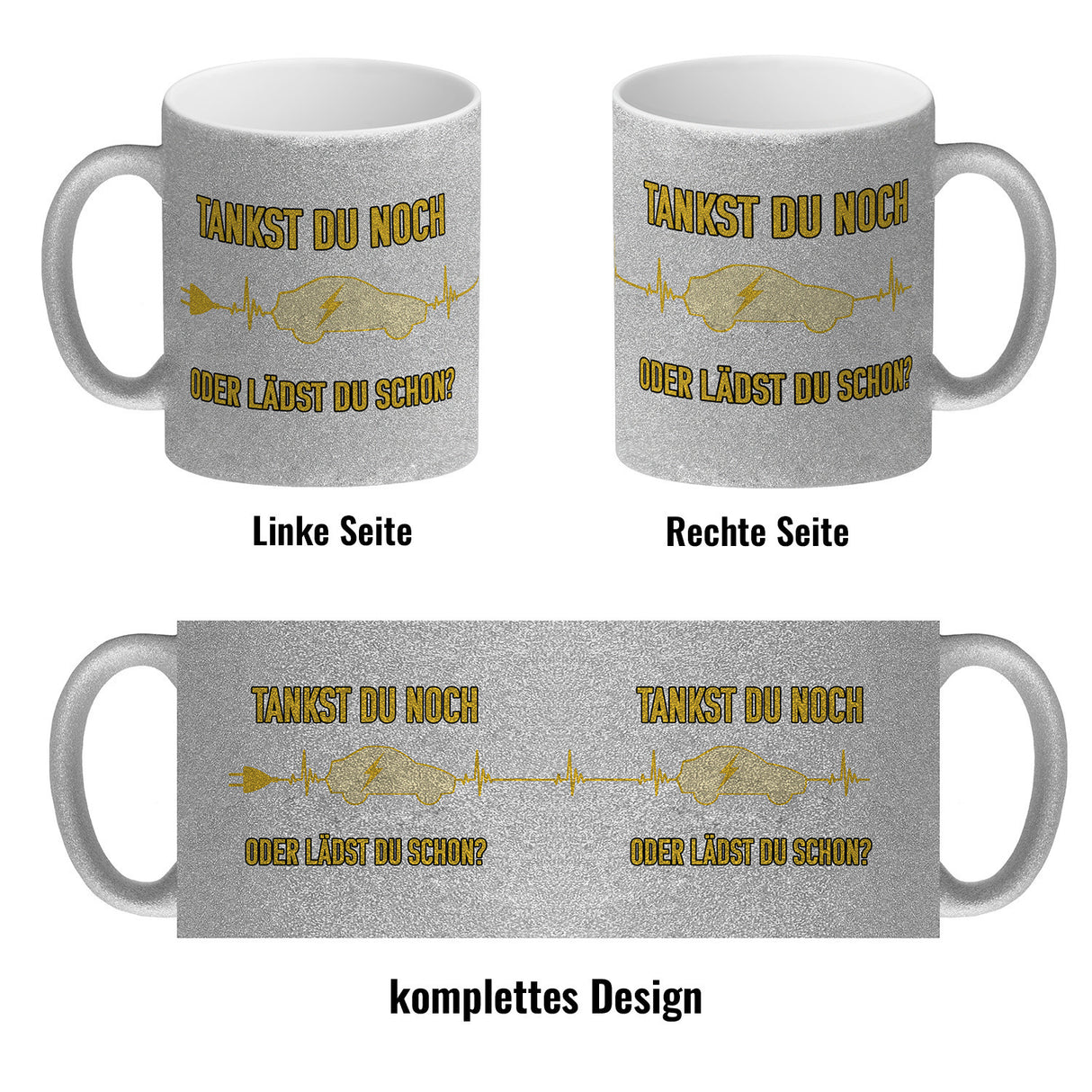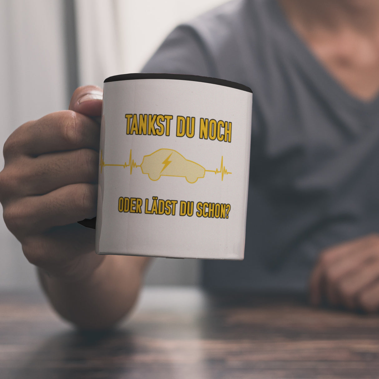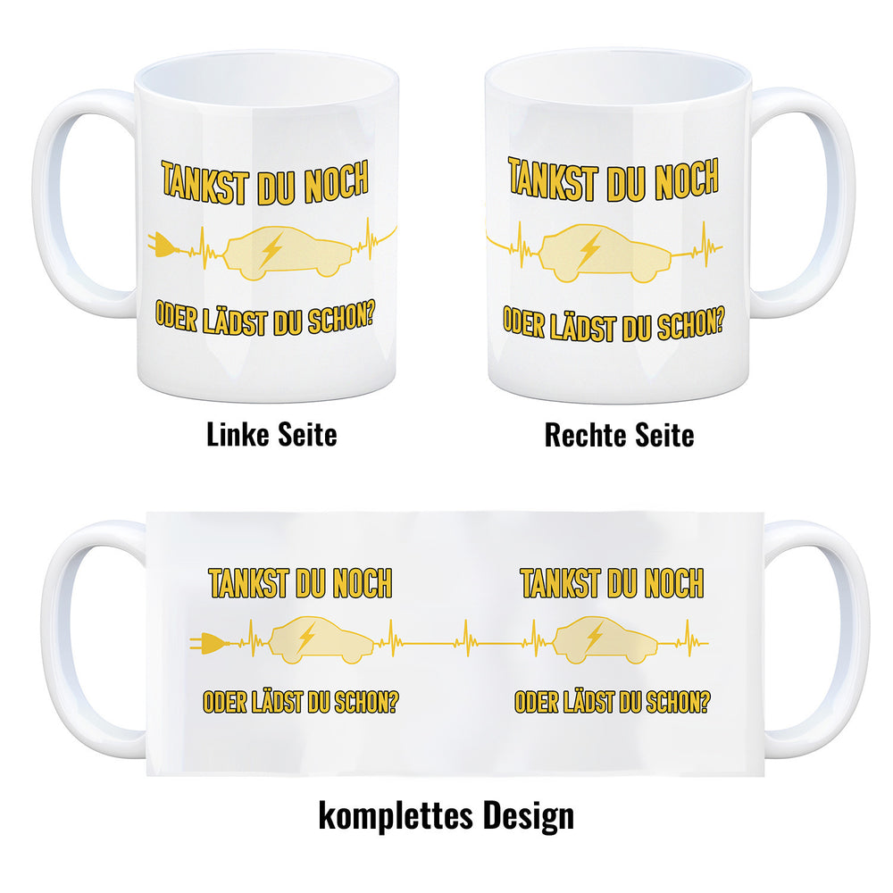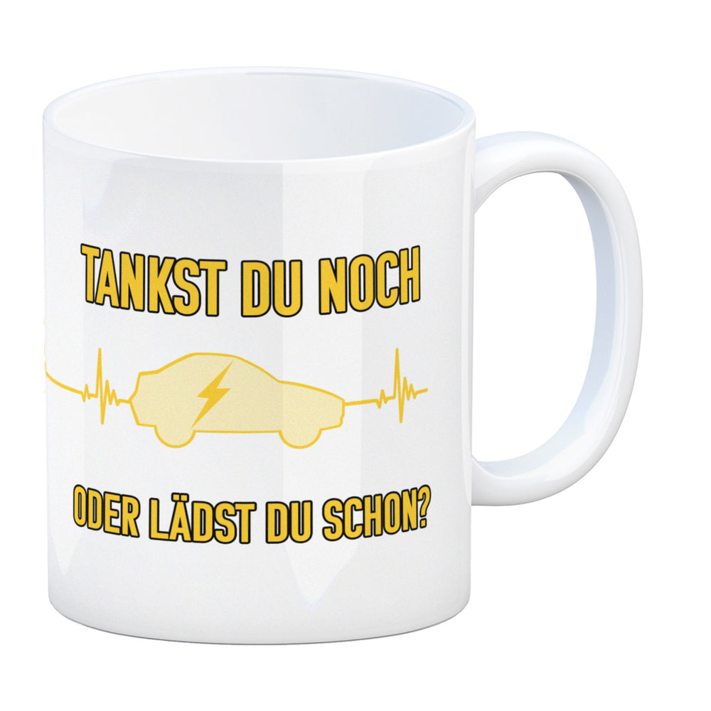 - 1x Tankst du noch oder lädst du schon Kaffeebecher mit Elektroauto in der gewählten Ausführung