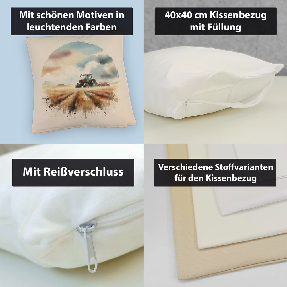 • 1x Traktor auf dem Feld Kissen in der gewählten Ausführung