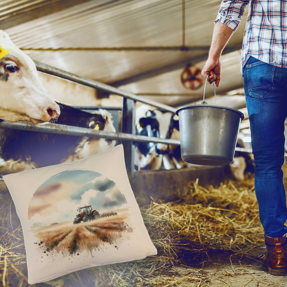 • Dieses Kissen murmelt leise: "Träume groß, Bauer!" Eingehüllt in Bodenbearbeitungs-Chic und Ernte-Eleganz bringt es Landmaschinen-Luxus direkt zu dir nach Hause. Schnapp dir dein Agrar-Accessoire und kultiviere Komfort – von der Couch aus!