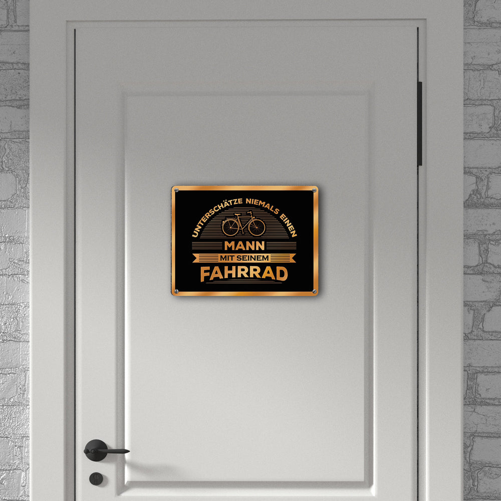 Unterschätze nie jemanden mit seinem Fahrrad Metallschild - Rad Hobby Sport bike Mountainbike Rennrad Opa papa Junge