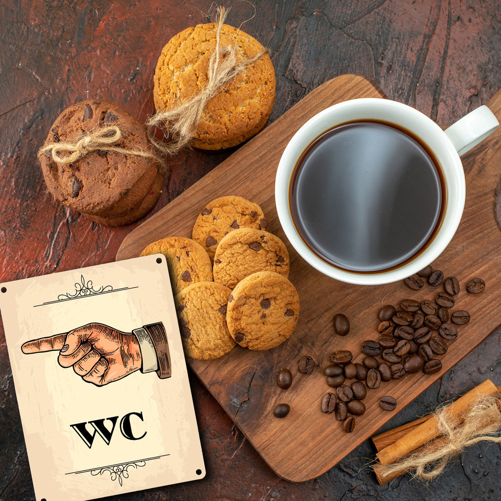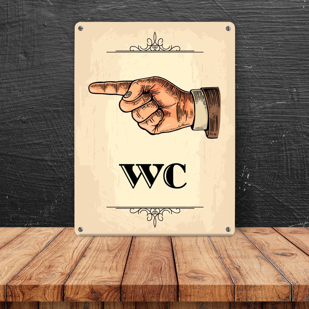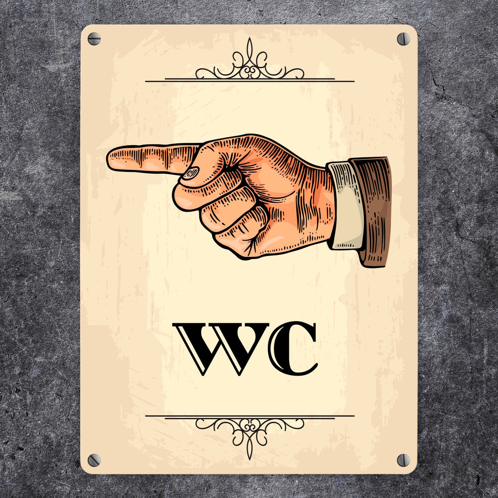• 1x Vintage WC Richtungs Schild mit Hand nach links in beige in der gewählten Größe