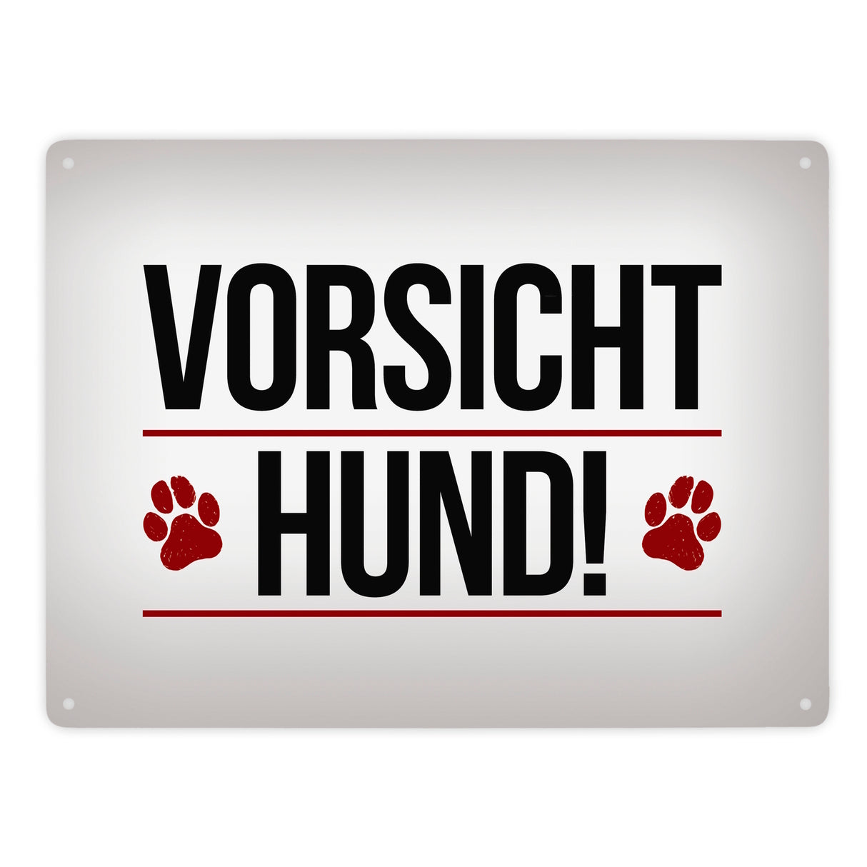 • 1x Vorsicht Hund! Metallschild mit Pfoten Motiv - Warnung Hinweis Achtung Warnschild in der gewählten Größe