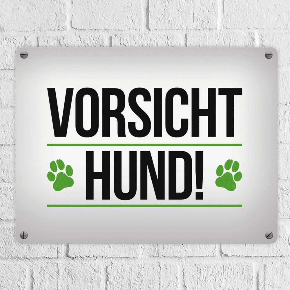Vorsicht Hund! Metallschild mit Pfoten Motiv - Warnung Hinweis Achtung Warnschild