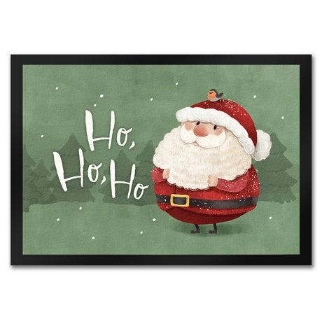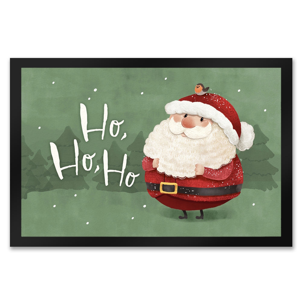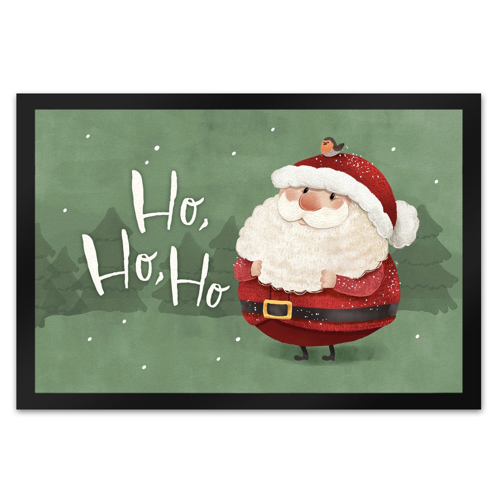 Weihnachtsmann mit Rotkehlchen Fußmatte in 35x50 cm mit Spruch Ho Ho Ho