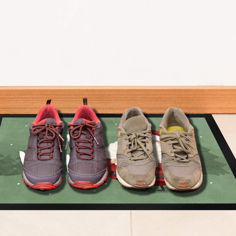- Die Fußmatte mit Weihnachtsmann Motiv ist ein echter Hingucker! Sie zeigt einen fröhlichen, pummeligen Weihnachtsmann mit einem niedlichen Rotkehlchen auf dem Kopf. Diese Fußmatte ist perfekt, um Gäste mit einem herzlichen Ho, ho, ho zu begrüßen und gleichzeitig die eigenen Räume sauber zu halten.