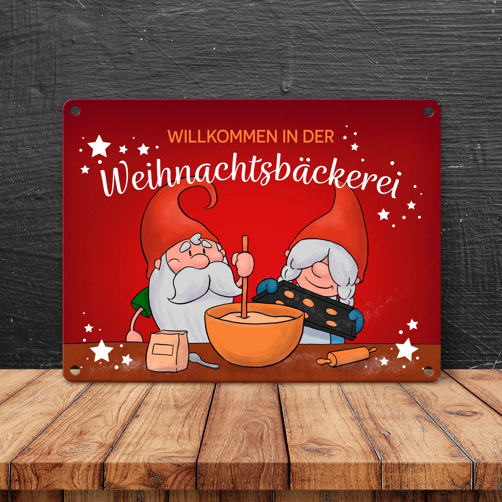 - 1x Willkommen in der Weihnachtsbäckerei Metallschild in der gewählten Größe