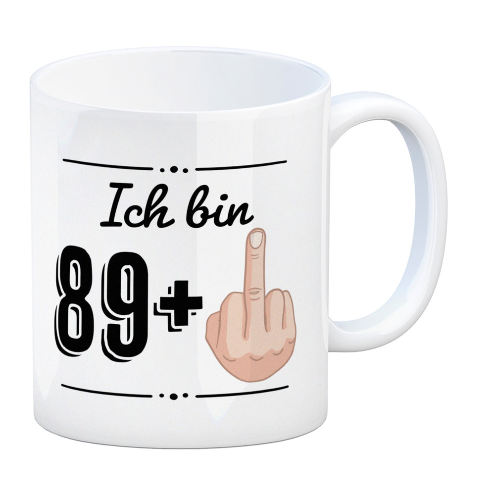 - 1x Witziger Kaffeebecher für den 90. Geburtstag mit Motiv: Mittelfinger in der gewählten Ausführung