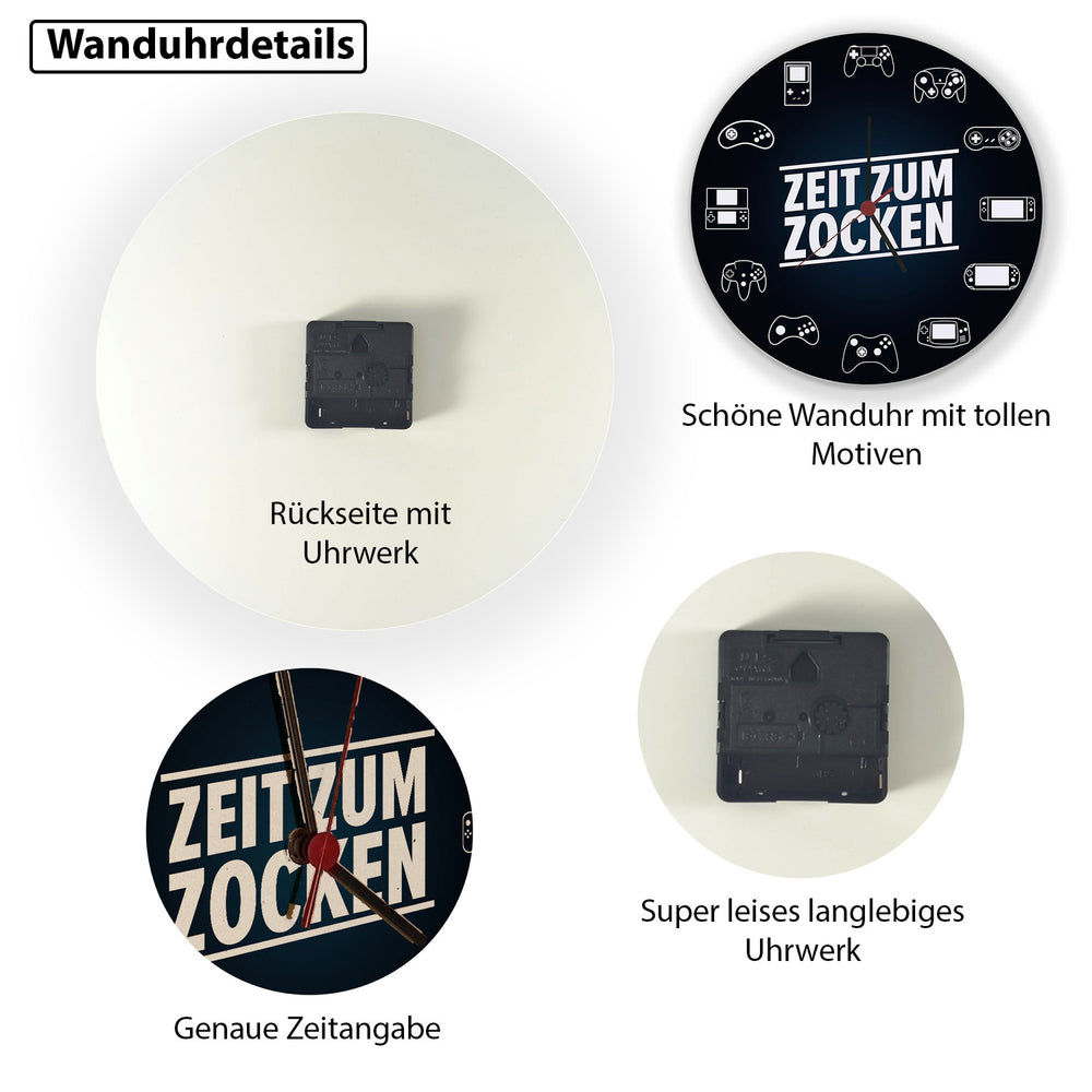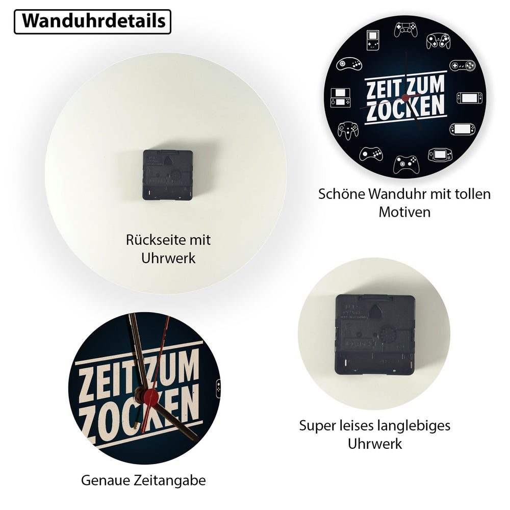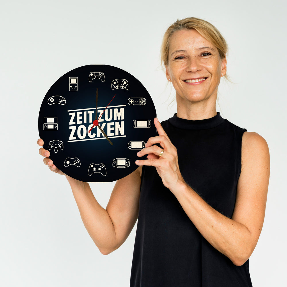 Bist du auf der Suche nach dem perfekten Geschenk für einen leidenschaftlichen Gamer? Dann hör gut zu, denn diese außergewöhnliche Wanduhr bringt jedes Zockerherz zum Höherschlagen! Die „Zeit zum Zocken“ Wanduhr mit den ikonischen Retro-Controllern ist nicht nur ein praktisches Accessoire, sondern auch ein echtes Highlight in jedem Gaming-Setup.Mit ihren verschiedenen Größen – 26,5 cm aus MDF, 28 cm aus Alu-Verbund oder 30 cm aus schickem Glas – passt sie sich flexibel jeder Wand und jedem Geschmack an. Egal ob jung oder alt, diese Uhr zeigt, dass du die Zeit für's Zocken immer im Blick hast. Zudem ist sie super einfach zu montieren und setzt einen originellen Akzent in deinem Gamingzimmer.Und das Beste daran? Diese witzige Uhr ist ein perfektes Geschenk für jeden Gamer, der seine Leidenschaft stilvoll zur Schau stellen möchte. Bereite jemandem eine Freude, indem du ihm diese einmalige Uhr schenkst – ein Accessoire, das nicht nur die Zeit anzeigt, sondern auch jedes Zockerherz erobert.Also, worauf wartest du noch? Hol dir jetzt die „Zeit zum Zocken“ Wanduhr und mach dich oder einen geliebten Gamer glücklich! Denn die Zeit zum Zocken ist jetzt!
