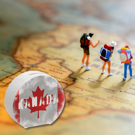Ab €16,95Grundpreis /Nicht verfügbarAuf LagerSpardose mit Kanada-Flagge im Used Look - Sparschwein für Urlauber