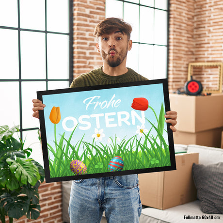 Ab €12,95Grundpreis /Nicht verfügbarAuf LagerFrohe Ostern Fußmatte mit grüner Blumenwiese und bunten Ostereiern