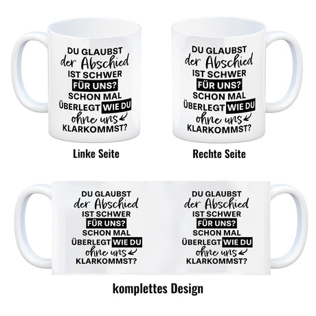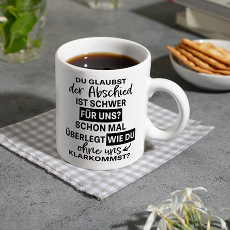 €10,95Grundpreis /Nicht verfügbarAuf LagerAbschied Kollege Kaffeebecher mit Spruch Wie kommst du ohne uns klar