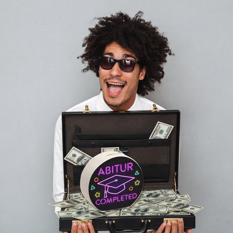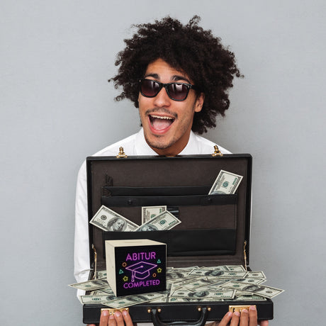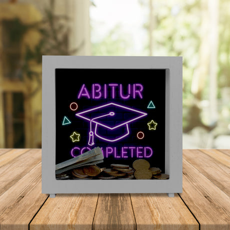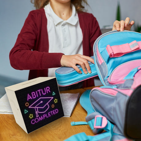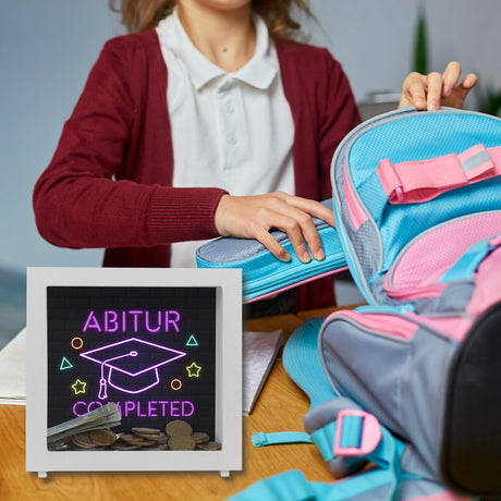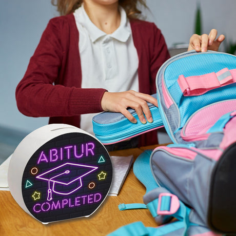 Ab €4,95Grundpreis /Nicht verfügbarAuf LagerDoktorhut in Neonschrift Spardose mit Spruch Abitur completed
