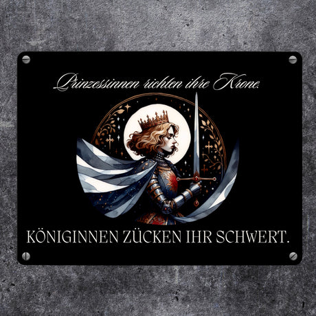 €4,95Grundpreis /Nicht verfügbarAuf LagerKönigin mit Schwert Metallschild in 15x20 cm mit Spruch Königinnen zücken ihr Schwert