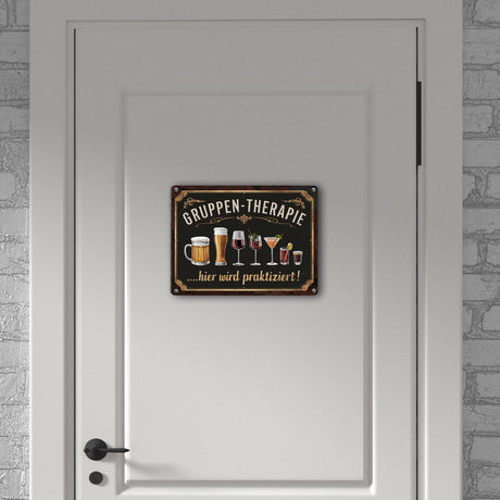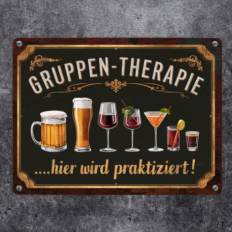 €7,95Grundpreis /Nicht verfügbarAuf LagerGruppen-Therapie Alkohol Metallschild in 15x20 cm - Hier praktiziert