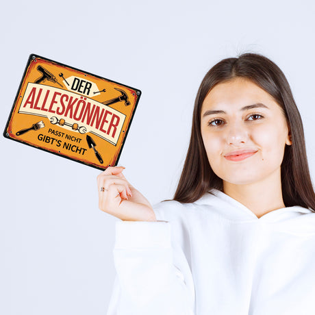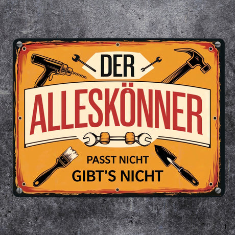 Ab €6,95Grundpreis /Nicht verfügbarAuf LagerDer Alleskönner Metallschild in 15x20 cm - Passt nicht, gibt’s nicht