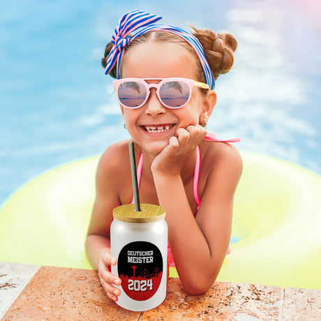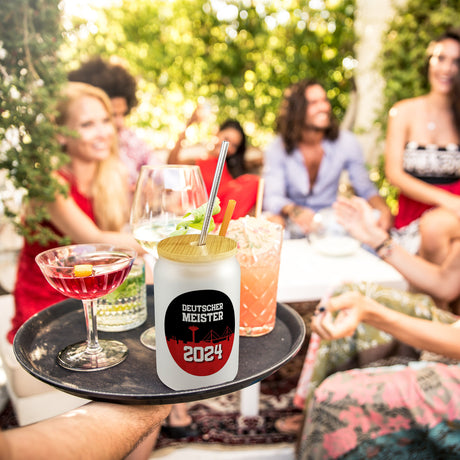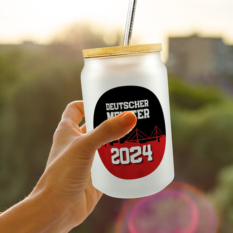 Ab €6,95Grundpreis /Nicht verfügbarAuf LagerLeverkusen Trinkglas mit Bambusdeckel mit Spruch Deutscher Meister 2024