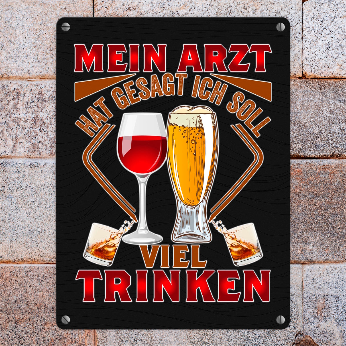 Alkohol Metallschild in 15x20 cm Mein Arzt hat gesagt ich soll viel trinken