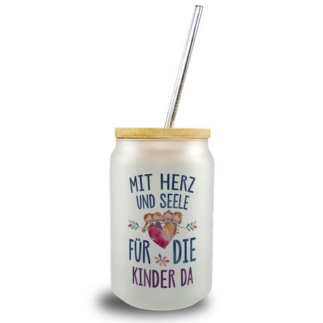 Mama Herzschlag mit Blume Trinkglas mit Bambusdeckel