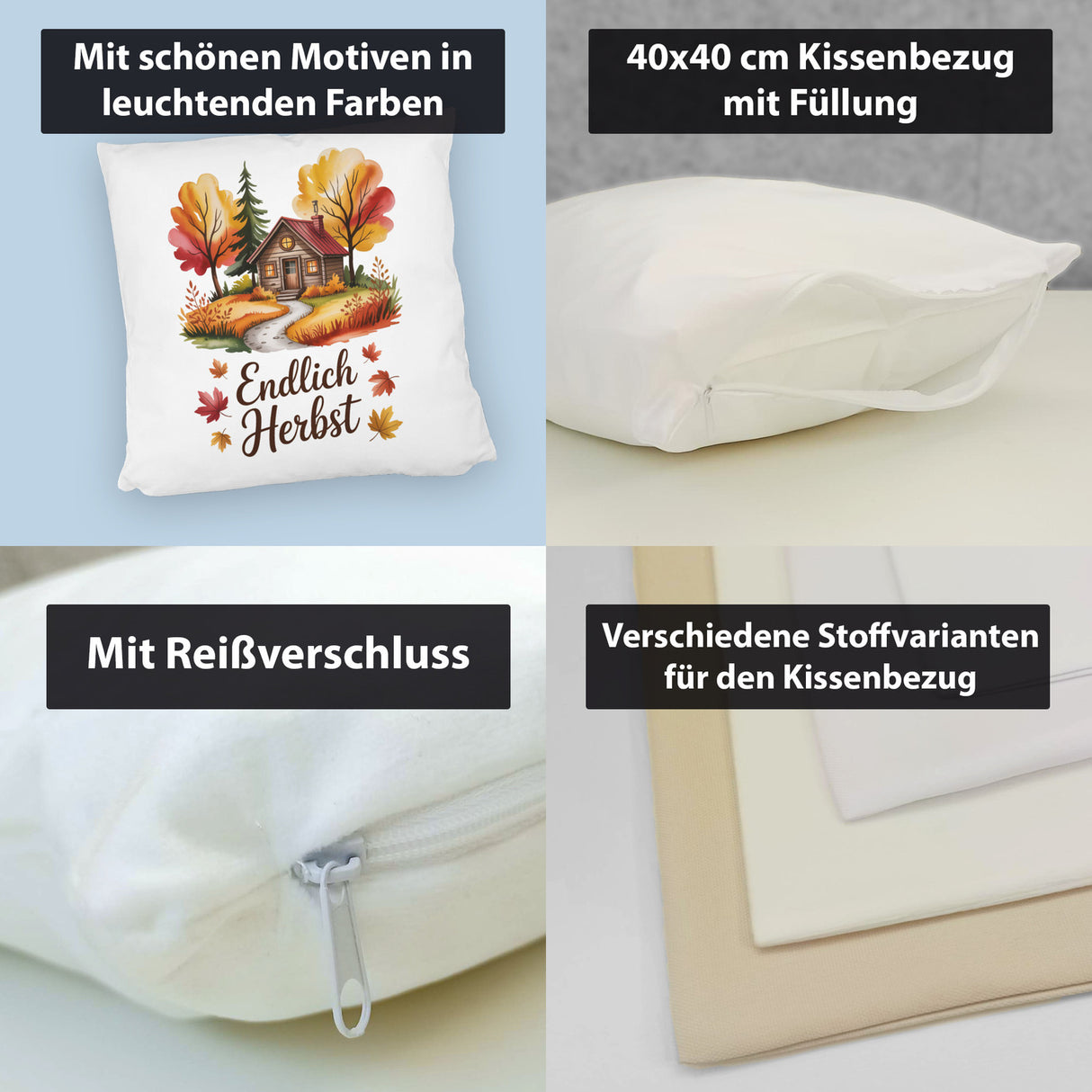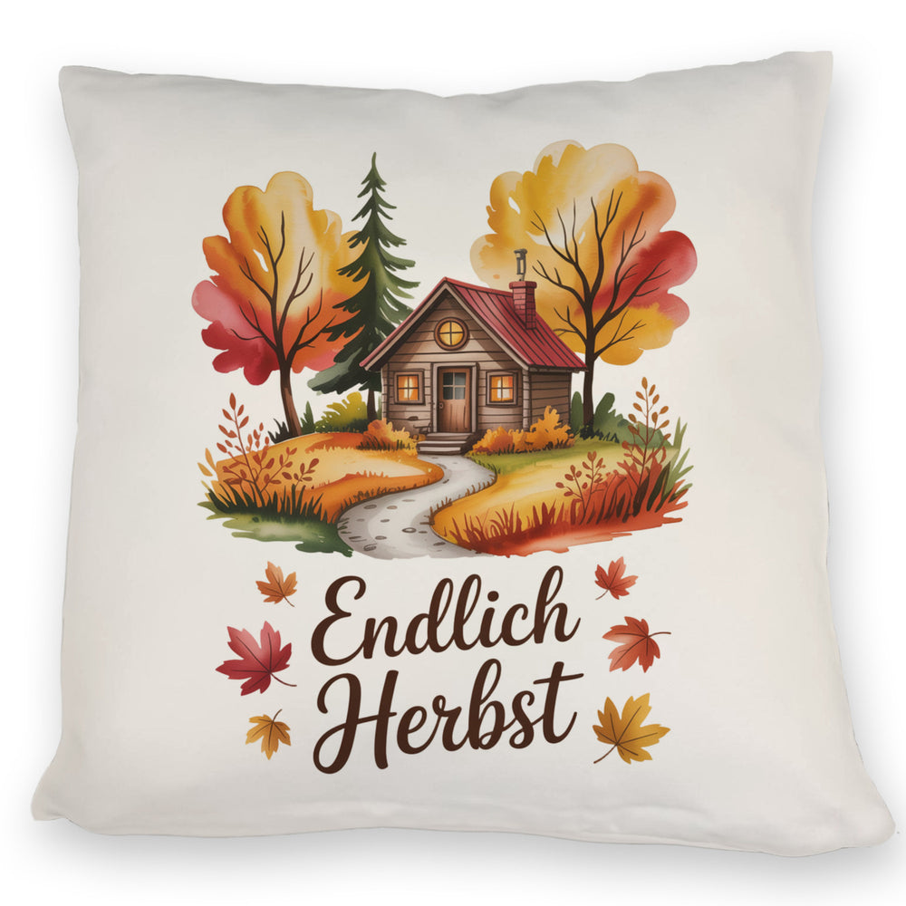 - 1x Aquarell Hütte im Herbst Kissen - Endlich Herbst in der gewählten Ausführung