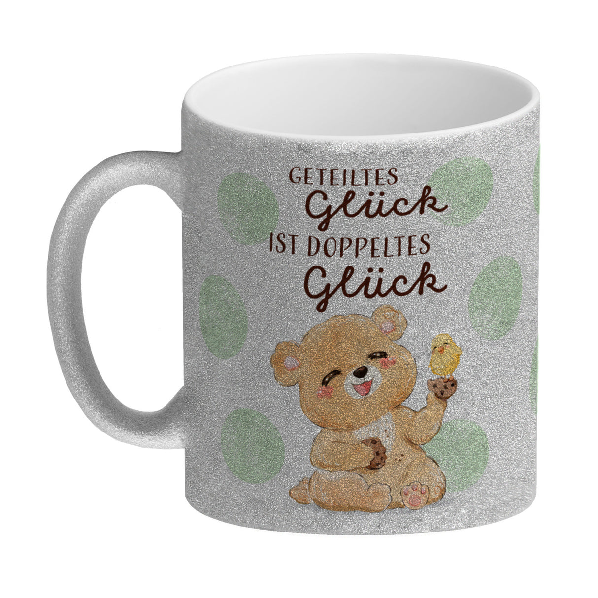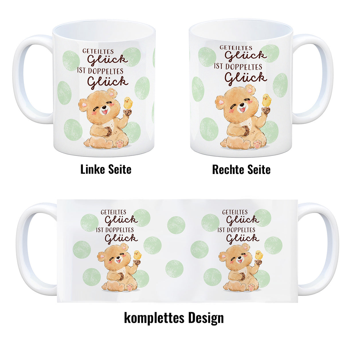 Bär Kaffeebecher mit Spruch Geteiltes Glück ist doppeltes Glück