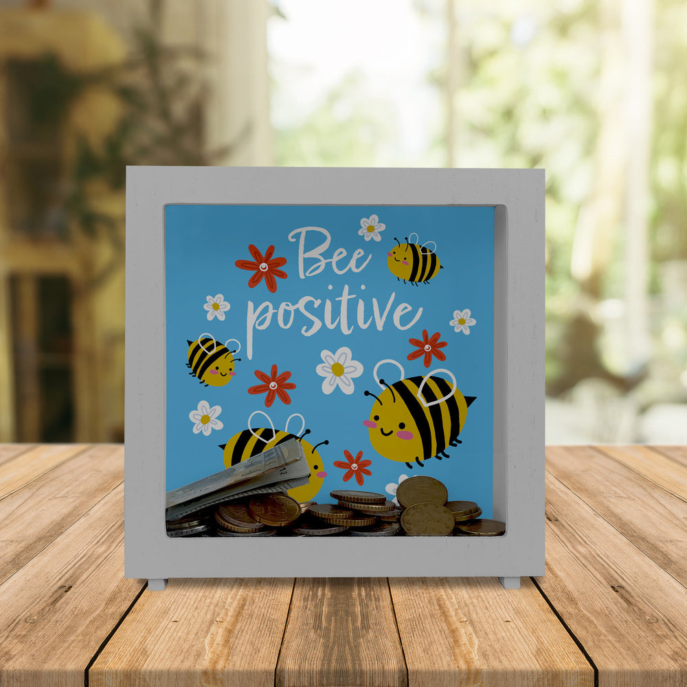 Verwandle dein Zuhause in eine Bienen-Oase und schenke dir oder einem lieben Menschen die bee positive Spardose mit süßen Bienen. Sie ist ein schönes Geschenk für Kinder, Familie oder Freunde zu jedem Anlass und motiviert dich, positiv zu bleiben und Geld zu sparen. Erhältlich in drei Varianten: Als schlichte Holzspardose, als ovale Keramik-Version oder als exklusive Rahmen-Variante aus Holz mit Sichtfenster. Jede Spardose wird in Deutschland mit Sorgfalt in Handarbeit hergestellt und ist eine wundervolle Geschenkidee für jeden Anlass. Überraschen Sie Ihre Lieben mit dieser bee positive Spardose und verwandeln Sie Ihr Zuhause in eine Bienen-Oase!