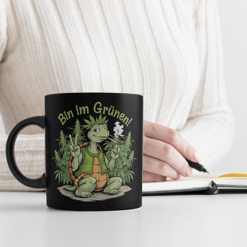 Bekiffte Schildkröte mit Joint Tasse - Bin im Grünen