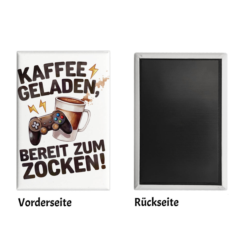 - In leuchtenden Farben kombiniert dieser rechteckige Magnet das Beste aus zwei Welten: Kaffee und Gaming. Vor einem weißen Hintergrund steht der Spruch "KAFFEE GELADEN" in markanten schwarzen Buchstaben. Eine Tasse, aus der Kaffee fließt, und ein bunter Gaming-Controller ergänzen das Bild. Für alle, die sowohl Heißgetränke als auch High Scores lieben, ist dieser Magnet ein Muss!