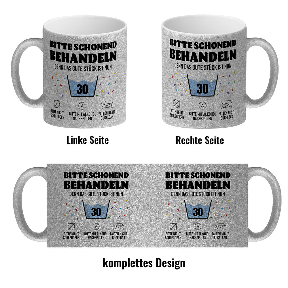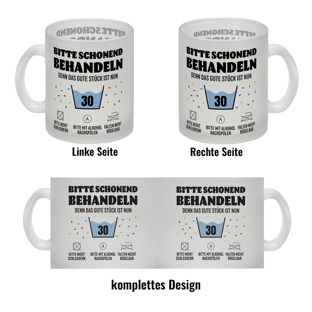 - 1x Bitte schonend behandeln - 30. Geburtstag Kaffeebecher in der gewählten Ausführung