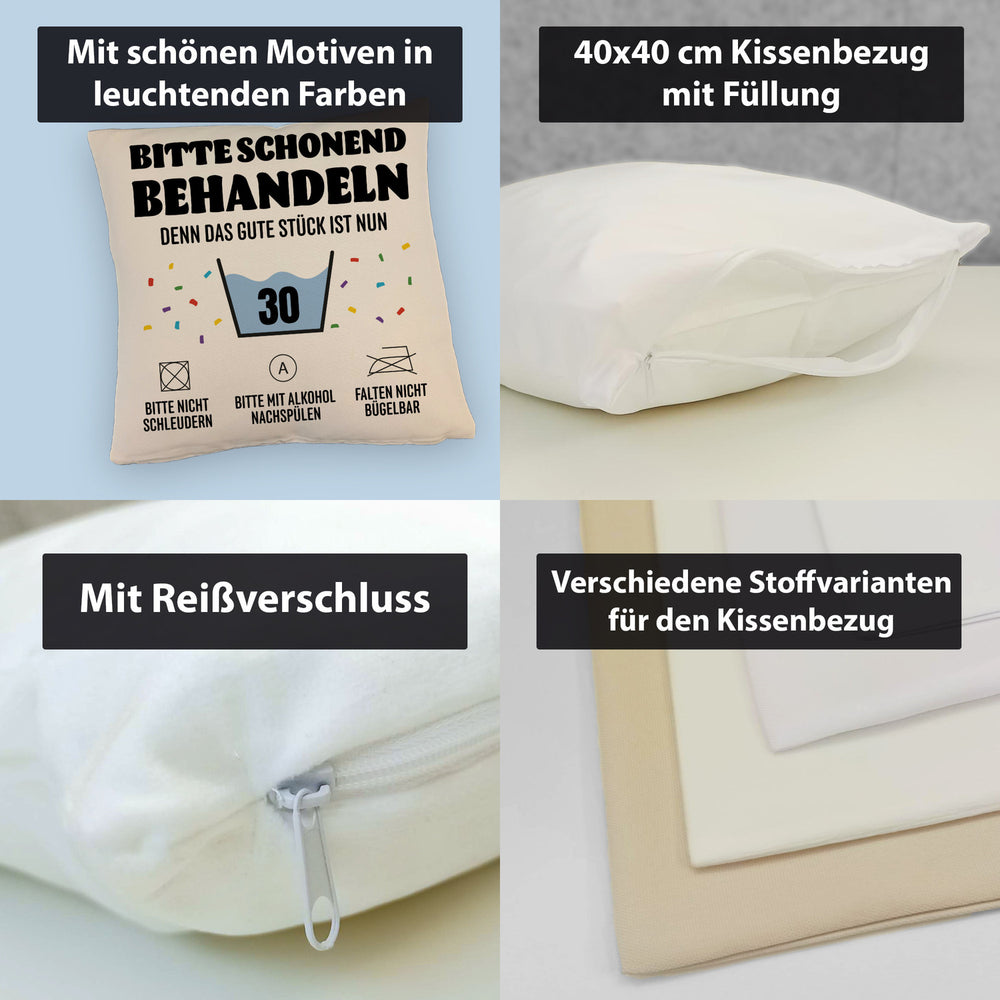 - 1x Bitte schonend behandeln - 30. Geburtstag Kissen in der gewählten Ausführung