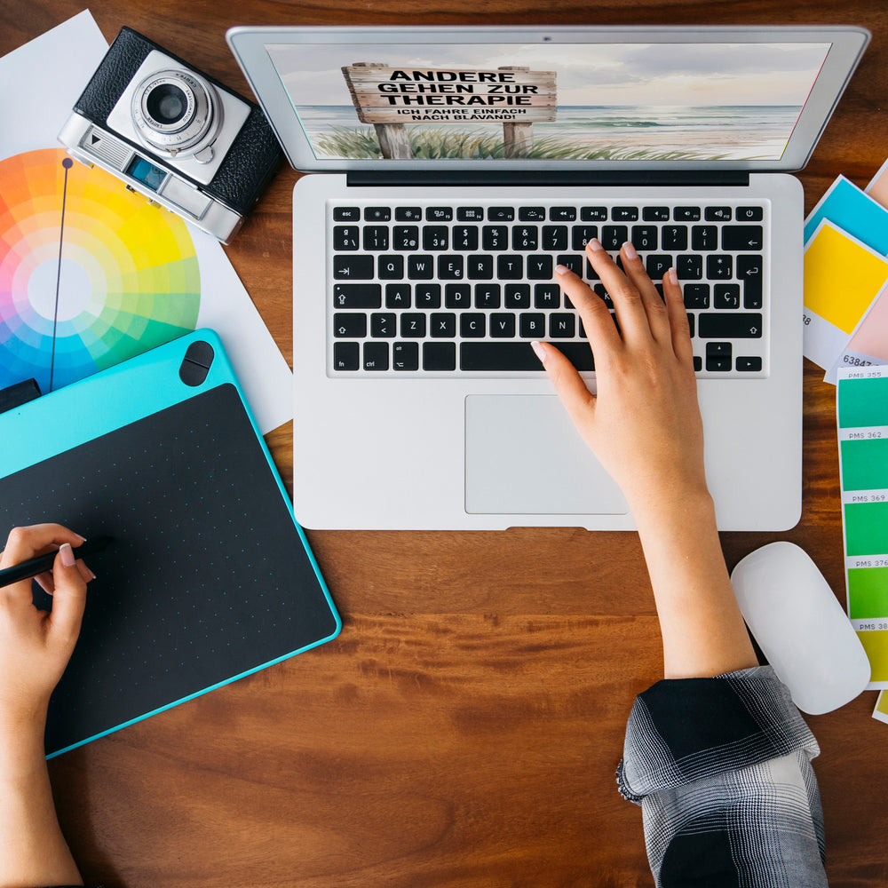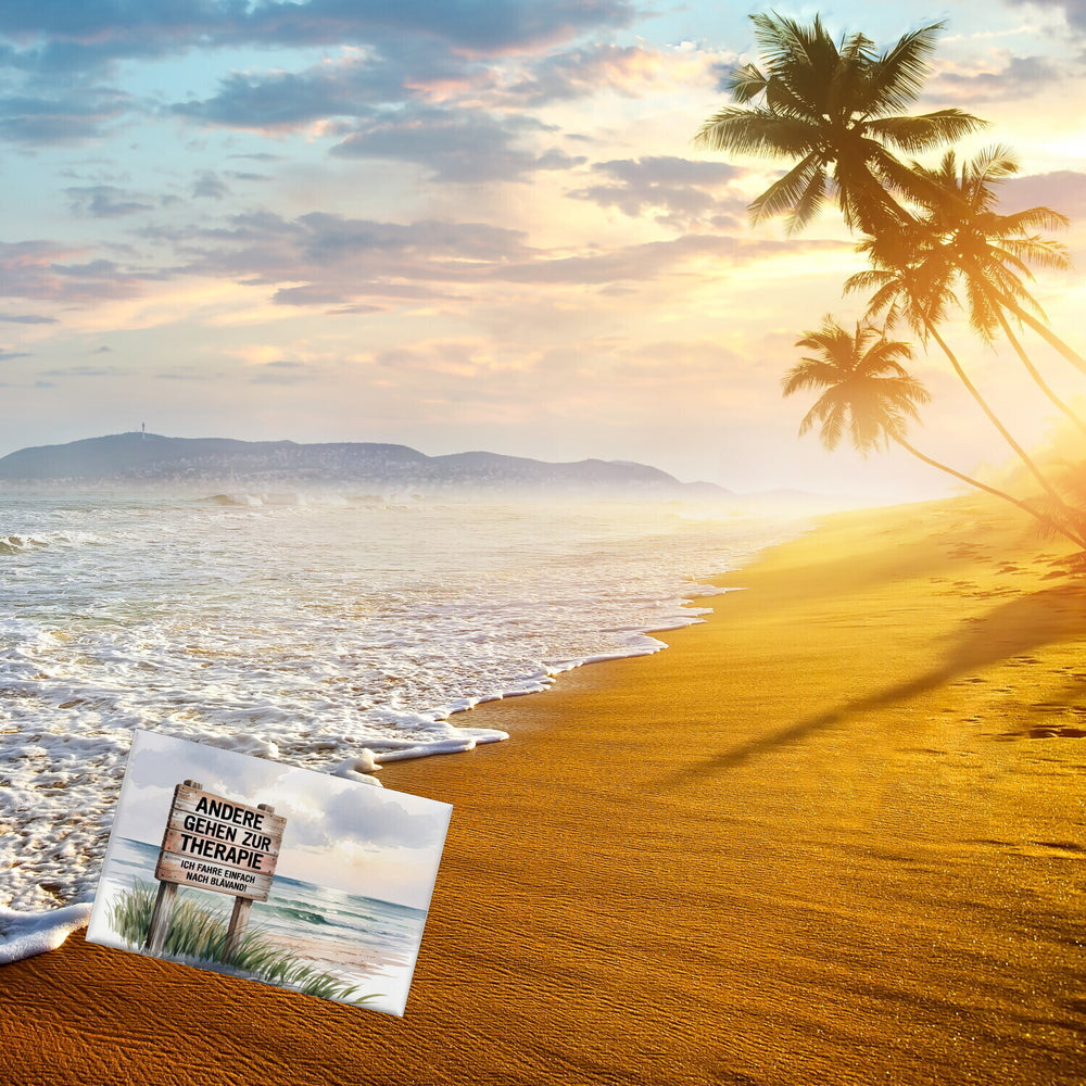 - Der BLÅVAND Souvenir Magnet zeigt eine friedliche Strandszene in Aquarell. Weiche Sonnenstrahlen tauchen die Szenerie in warmes Licht. Ein rustikales Holzschild mit dem humorvollen Spruch "Andere gehen zur Therapie, ich fahre einfach nach Blåvand!" sticht hervor und ist umrahmt von sanft wiegenden Schilfrohren.