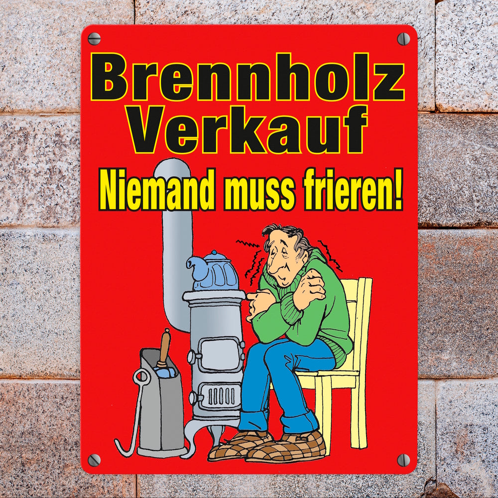 - 1x Brennholzverkauf. Niemand muss frieren! Metallschild in 15x20 cm in der gewählten Größe