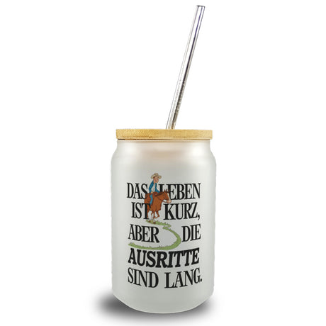 Reiter Spruch Trinkglas mit Bambusdeckel Ausritte sind lang