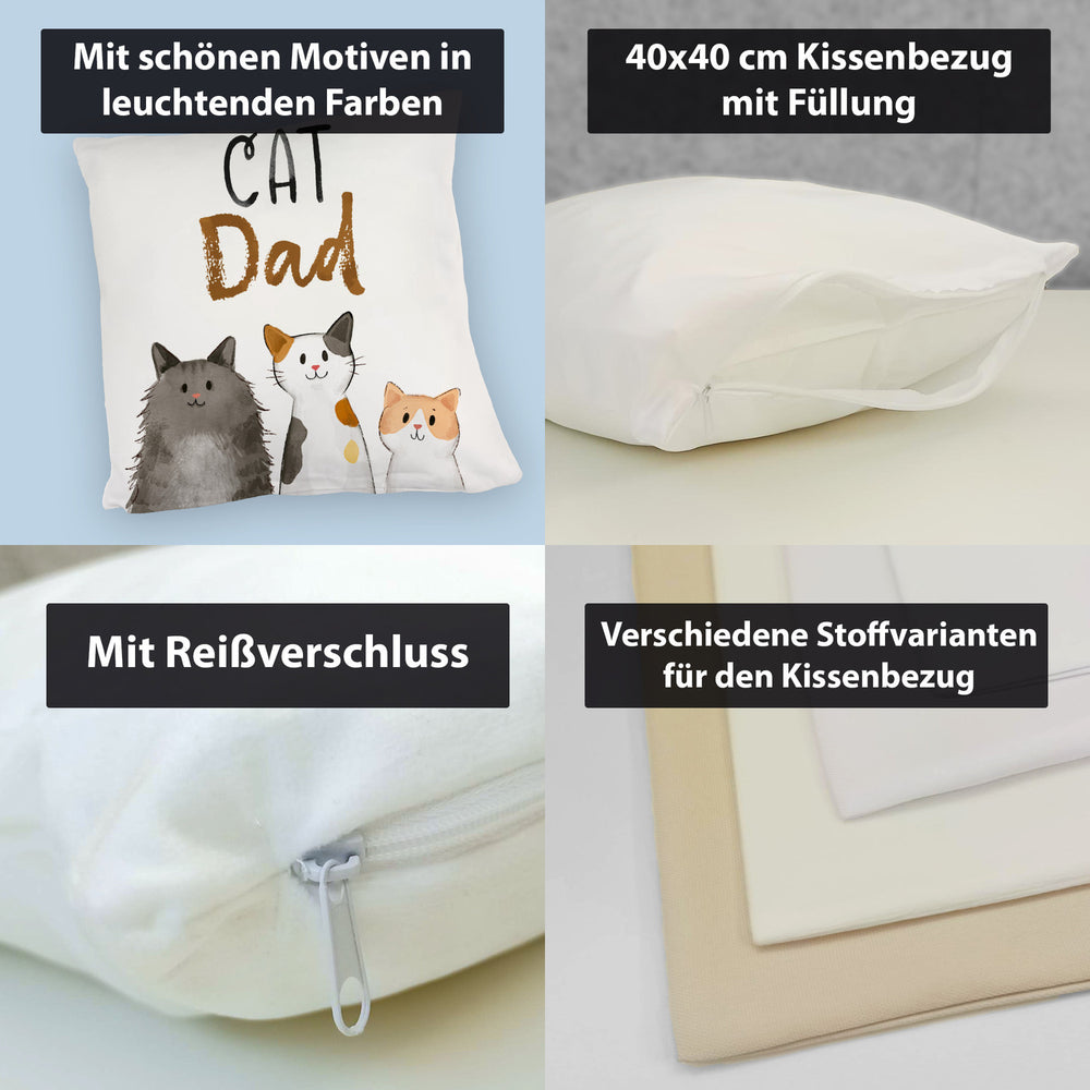 | Cat Dad/Standard | ![]() | Material: Polyester / Größe: ca. 40x40 cm / Bezug bei 30° waschbar |