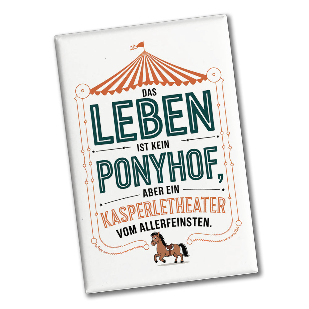 Das Leben ist kein Ponyhof sondern ein Kasperletheater Souvenir Magnet Cartoon Pferd
