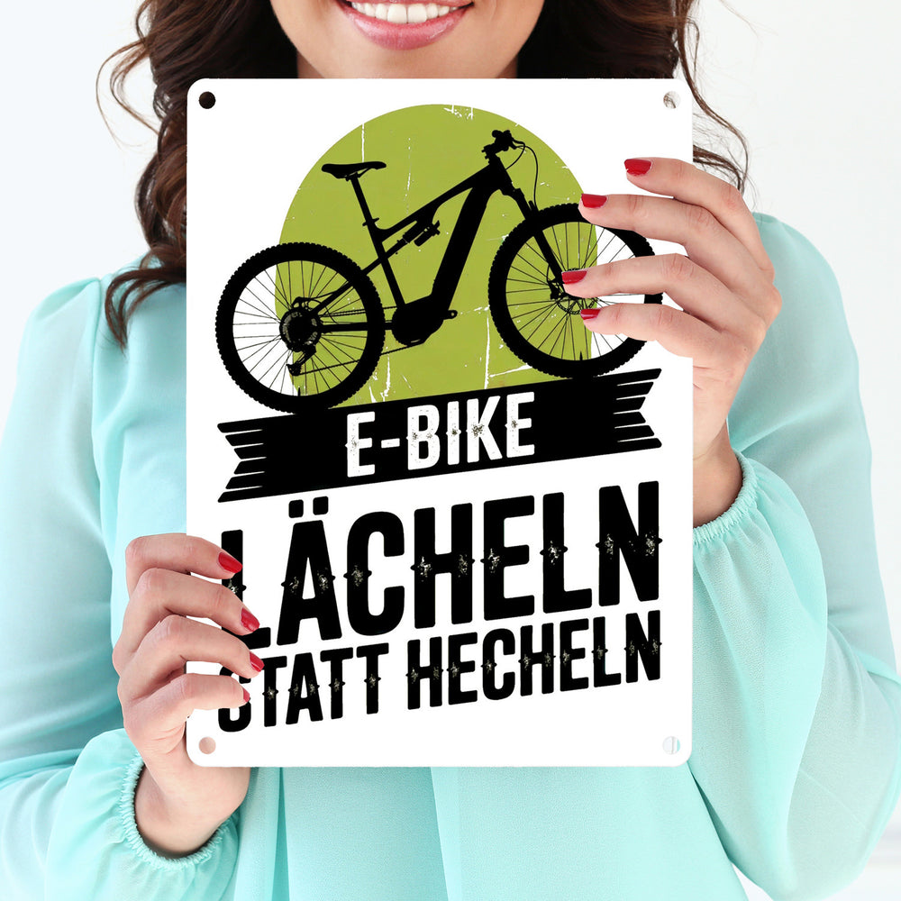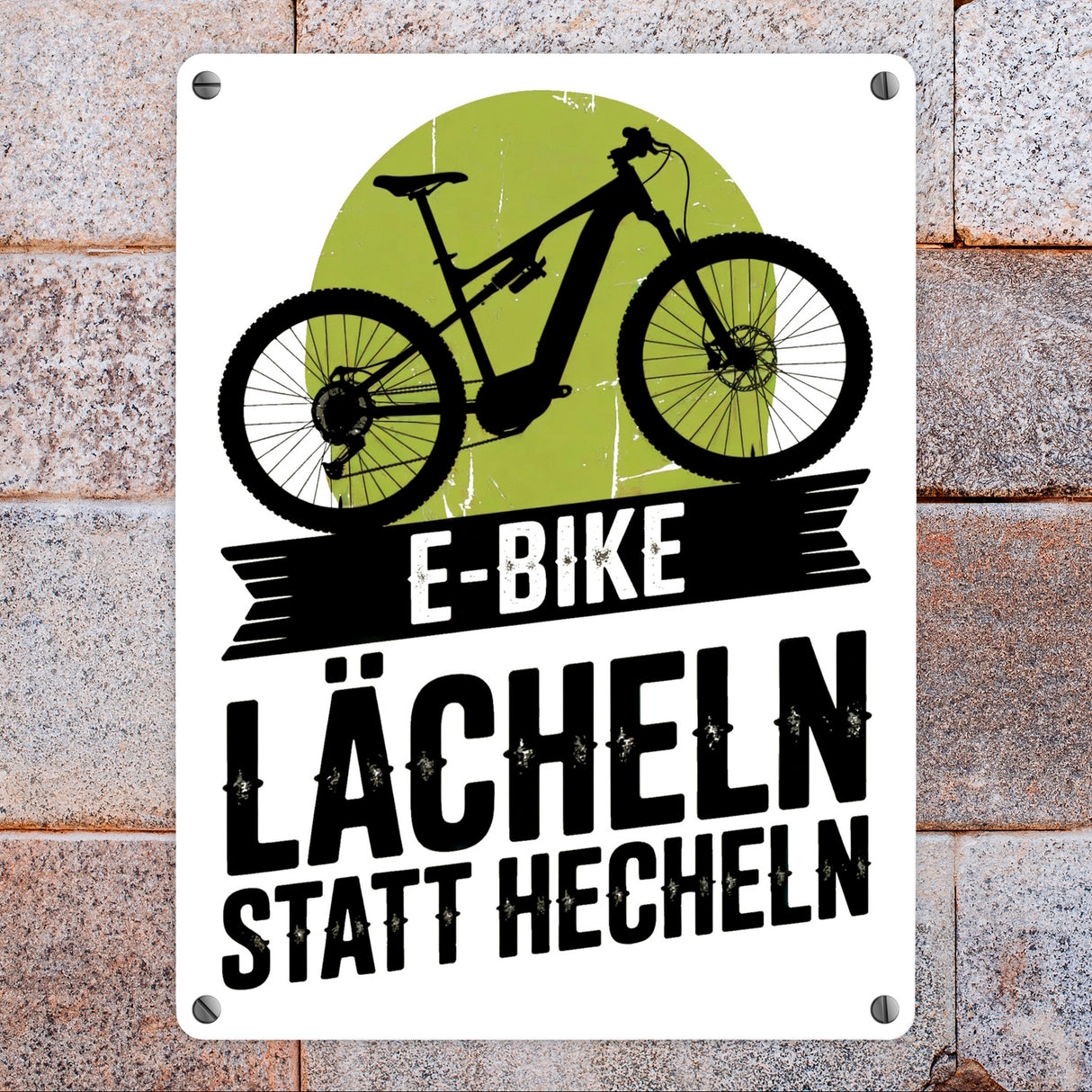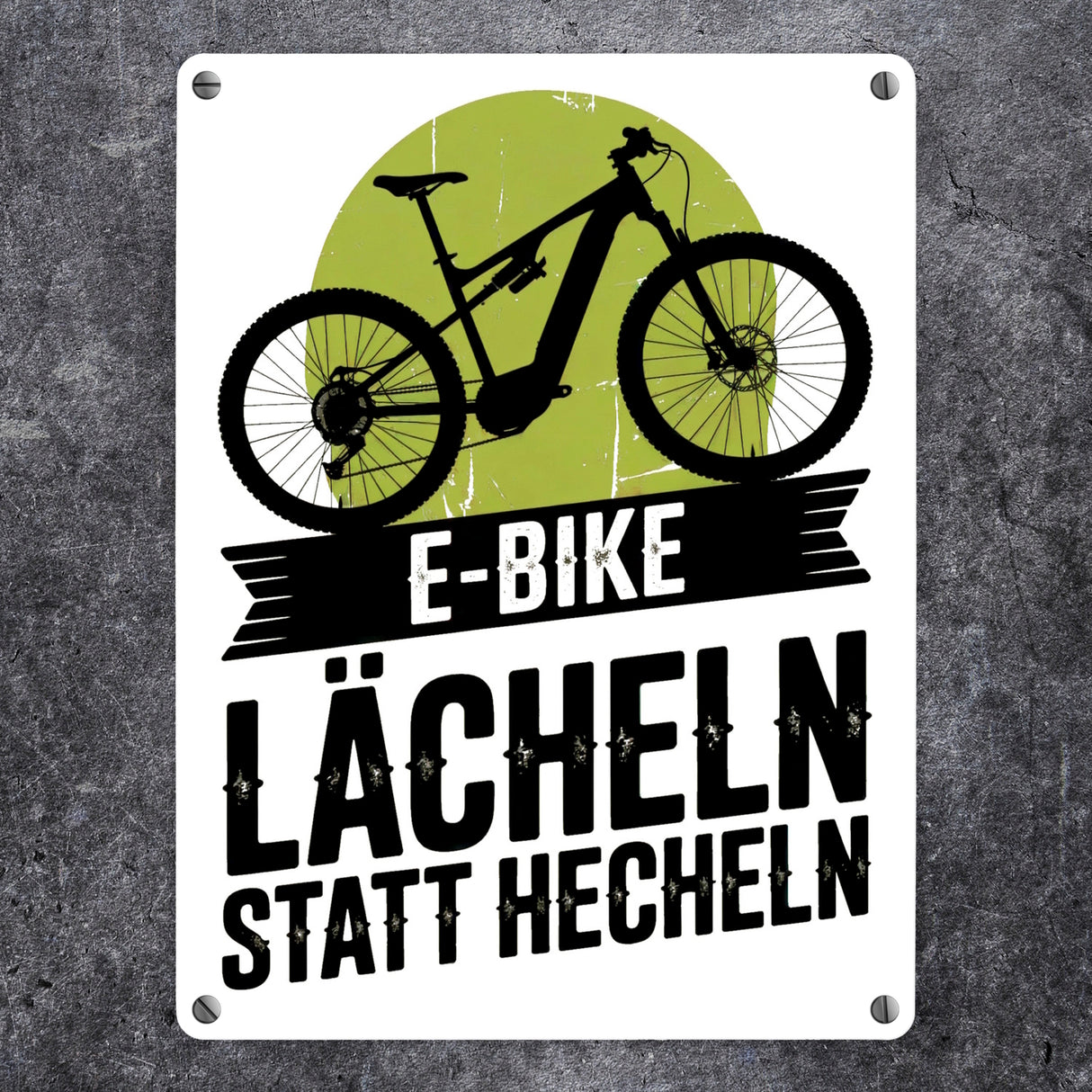 - 1x E-Bike Lächeln statt hecheln Vintage-Design Metallschild in 15x20 cm für Biker in der gewählten Größe