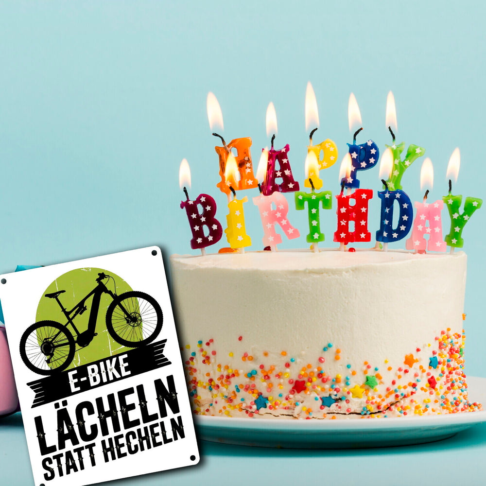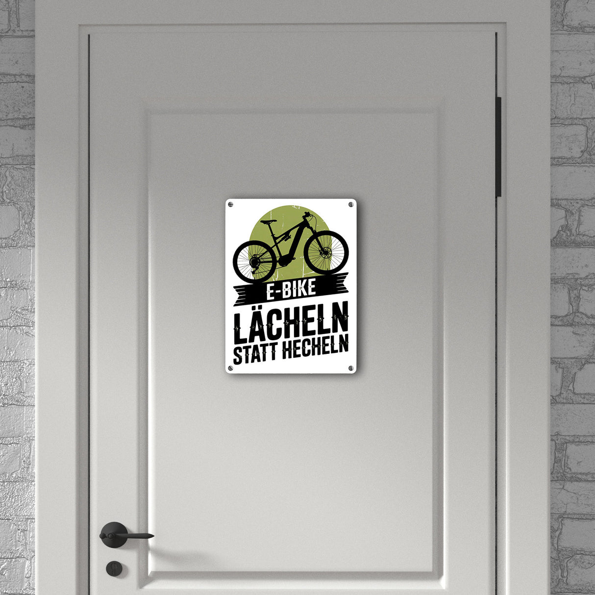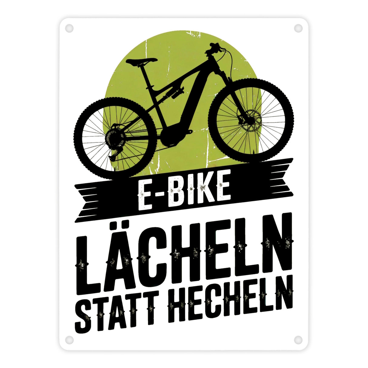 - 1x E-Bike Lächeln statt hecheln Vintage-Design Metallschild in 15x20 cm für Biker in der gewählten Größe