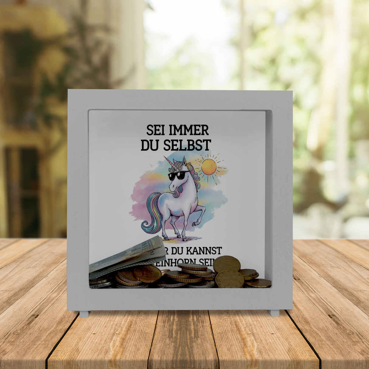 Einhorn mit Sonnenbrille Spardose Sei ein Einhorn