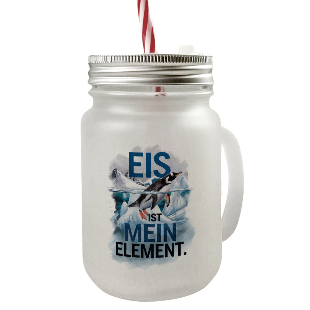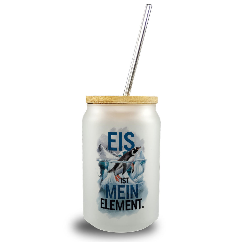 • 1x Eis ist mein Element Trinkglas mit Bambusdeckel Pinguin im Eis mit Bambusdeckel oder Henkel