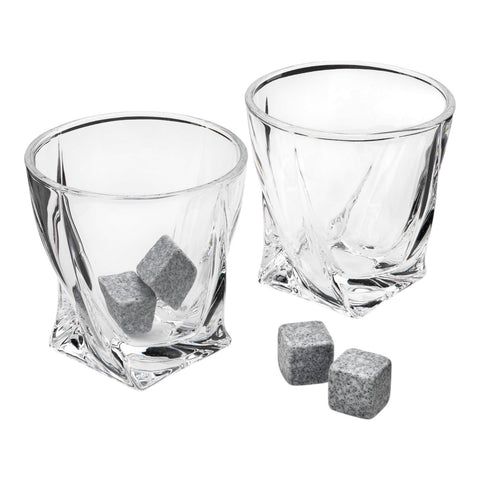 Verdrehte Whiskey Gläser im 2er-Set mit Eissteinen