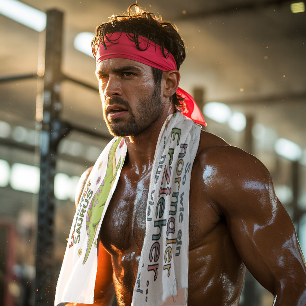 Willkommen in der wunderbaren Welt des „Erzieher Saurus“ – ein Eishandtuch, das nicht nur erfrischt, sondern auch alle Blicke auf sich zieht! Perfekt für Erzieher und Fans einzigartiger Designs, die mit Humor und Herzblut ihren Alltag gestalten möchten. Unser Eishandtuch ist in den Größen 80x24 cm und 100x30 cm erhältlich und wird mit einem großen, grünen Dinosaurier bedruckt, der stolz drei kleine Dino-Babys präsentiert, die gerade ihre Eier verlassen haben. Umgeben von bunten Blümchen und Wolken sowie einem herzförmigen Ballon, schreit es förmlich: „Hättest du nicht gern einen genauso coolen Erzieher?“Der freche Spruch „…nur viel cooler!“ unterstreicht den Witz und Charme dieses Accessoires, das sicher jedes Klassenzimmer aufpeppt. Egal ob beim Sport, am Strand oder unterwegs – das Handtuch sorgt dank Verdunstungskälte für kühle Köpfe und zaubert gleichzeitig ein Lächeln ins Gesicht. Einfach in Wasser eintauchen, auswringen, auflegen und die Abkühlung genießen!Dieses Eishandtuch ist mehr als nur ein praktisches Tool; es ist ein Zeichen der Anerkennung für den harten Job von Erziehern und Lehrern. Es bietet ein stilvolles Statement für echte Dino-Fans, die ein bisschen frischen Wind in ihren Alltag bringen möchten. Verschenke Freude und eine Prise Gelassenheit – mit dem Erzieher Saurus Eishandtuch!