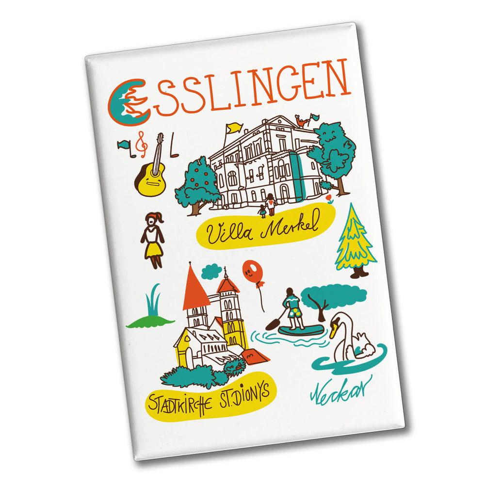 - Mit diesem Magneten holen Sie sich ein Stück Esslingen in Ihre Küche! Qualität und Design stehen an erster Stelle. Der Magnet ist mit Liebe zum Detail gestaltet und bedruckt – ein charmantes Accessoire mit Herz. Gönnen Sie sich oder Ihren Liebsten dieses besondere Stück Heimat!