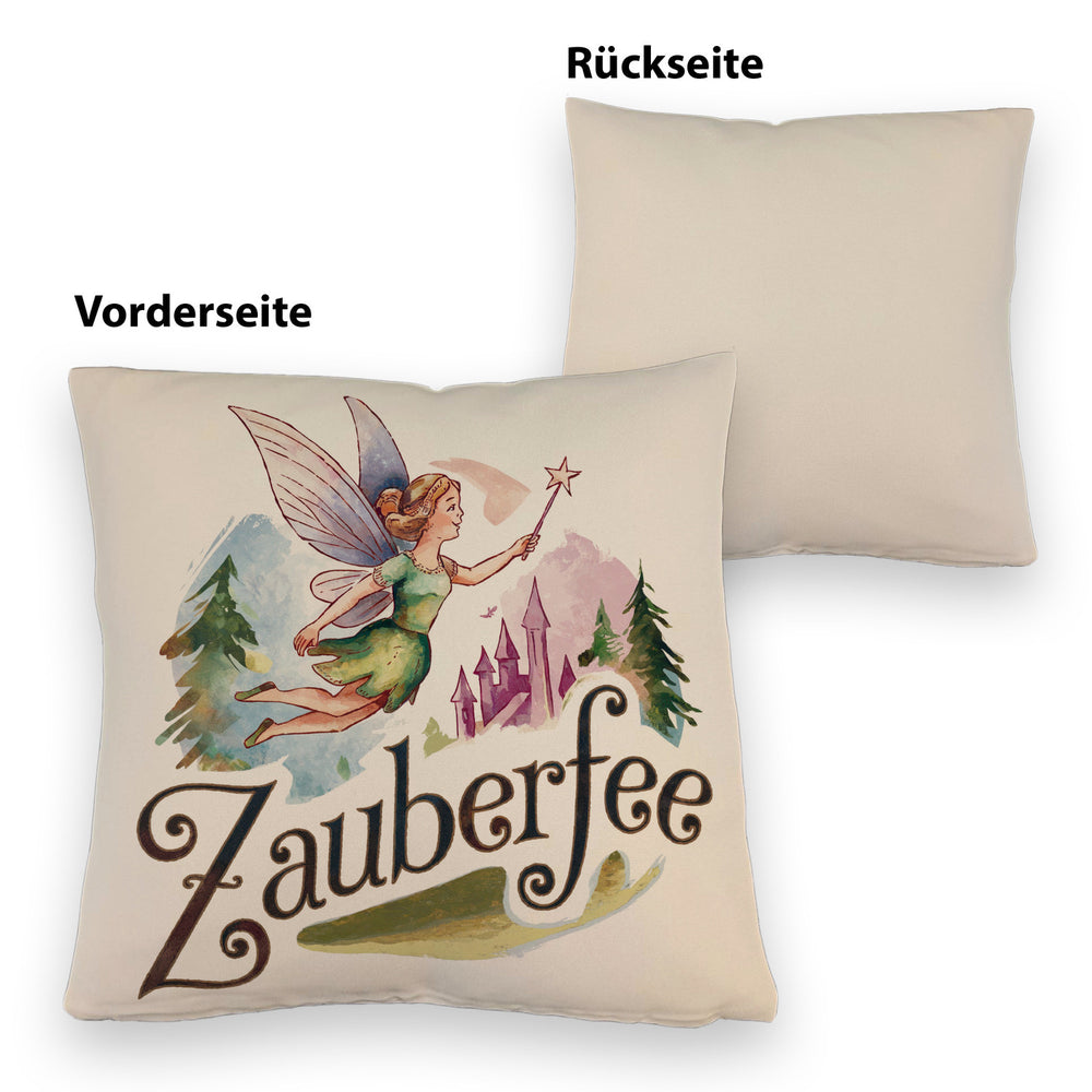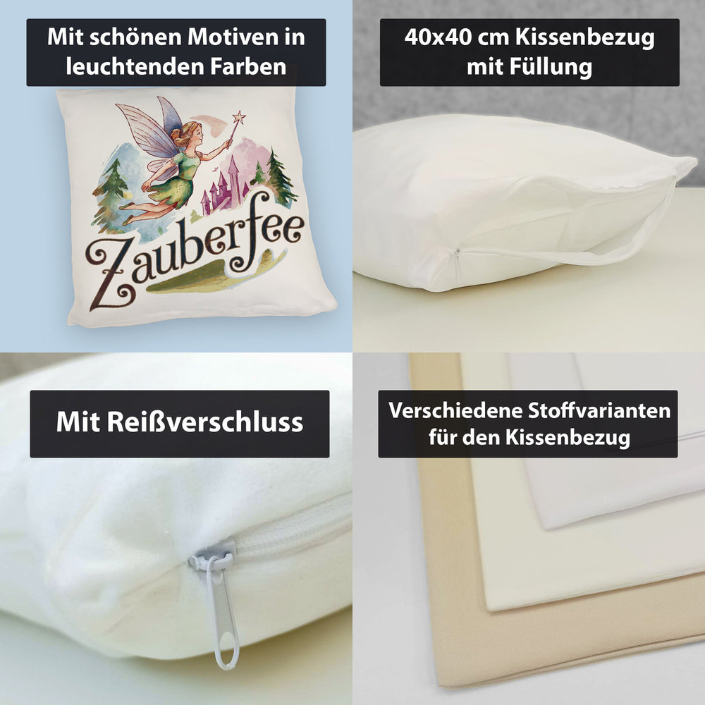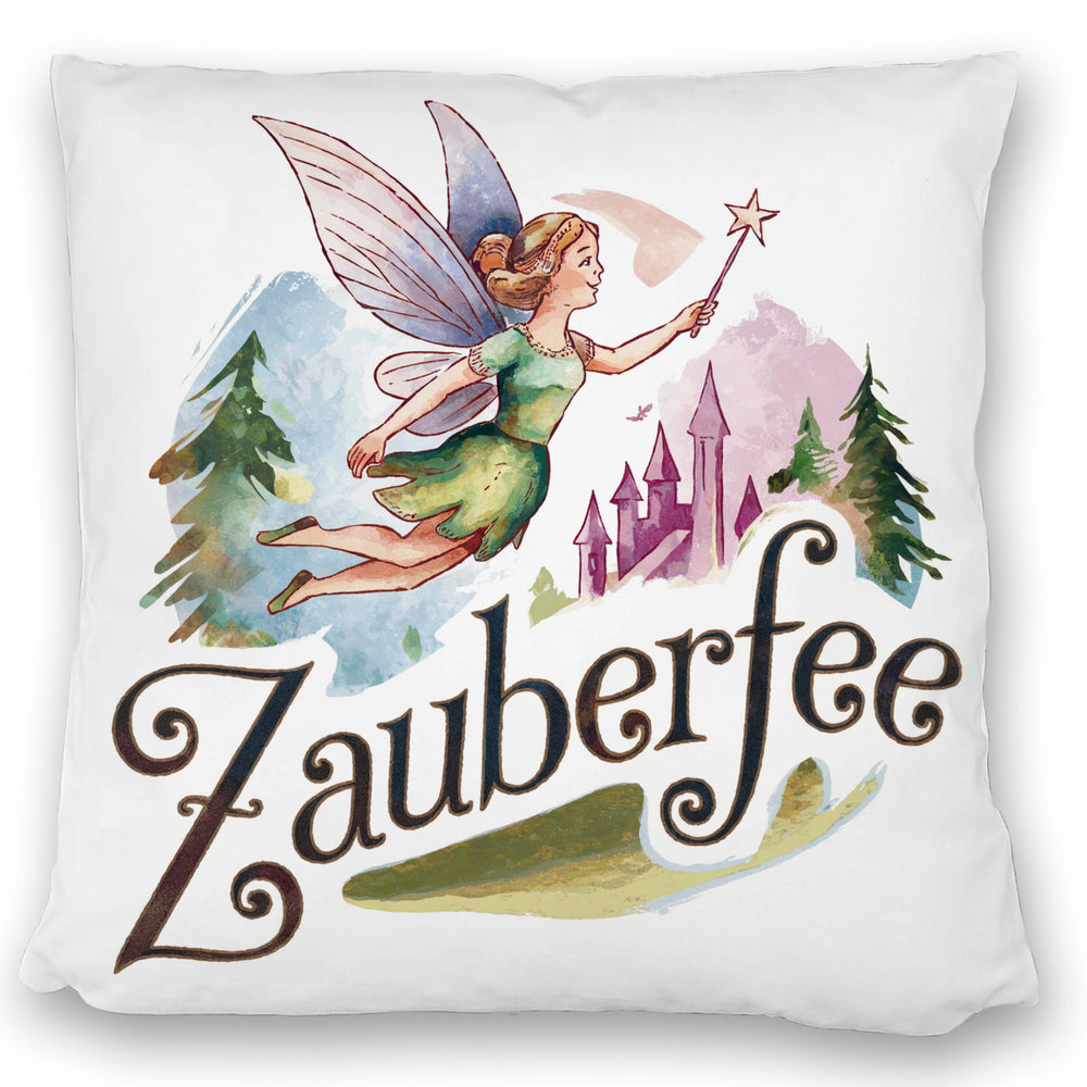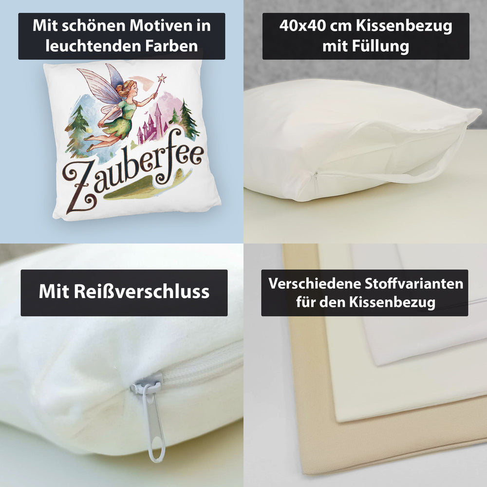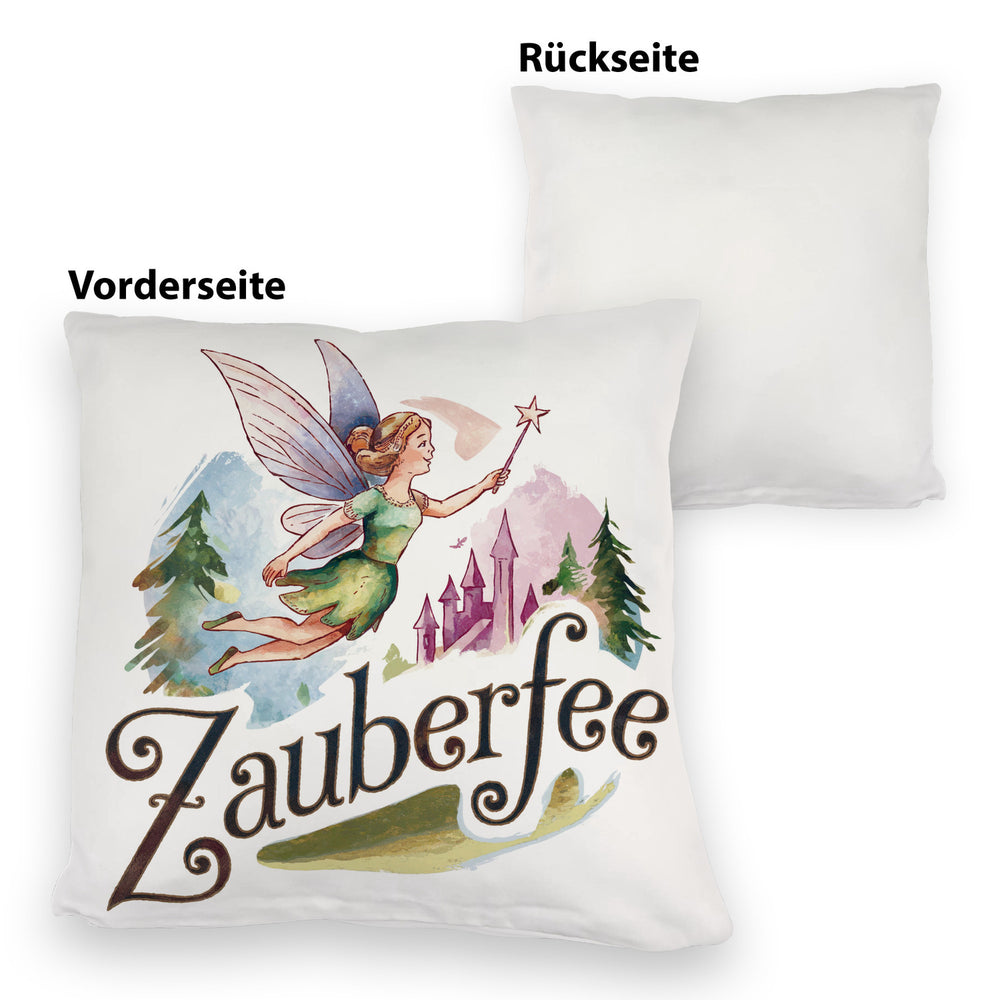 - Willkommen in der Welt der Magie! Dieses zauberhafte Kissen ist das perfekte Accessoire für alle Träumer und Fantasy-Liebhaber. Die Fee mit ihrem grünen Kleid und Zauberstab schwebt elegant vor einem Märchenschloss und Bäumen. Ein echtes Must-have für jeden, der ein bisschen Magie ins Wohnzimmer zaubern möchte!