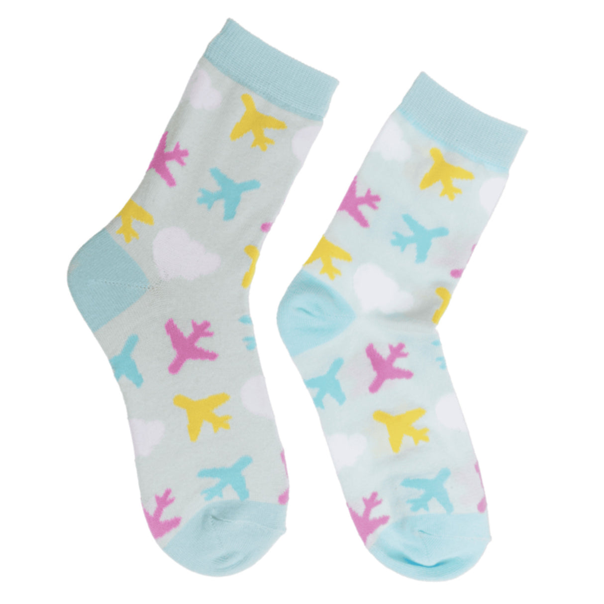 - Diese herrlich fliegenden Socken sind überwiegend hellblau und bieten einen himmlischen Anblick. Mit rosa, blauen, weißen und gelben Flugzeugen und Wolken, die frech durchs Sockenparadies ziehen, sind sie der Höhepunkt des Reise-Chics. Dank des flexiblen Größenbereichs von 36-42 passt der himmlische Komfort fast jedem!