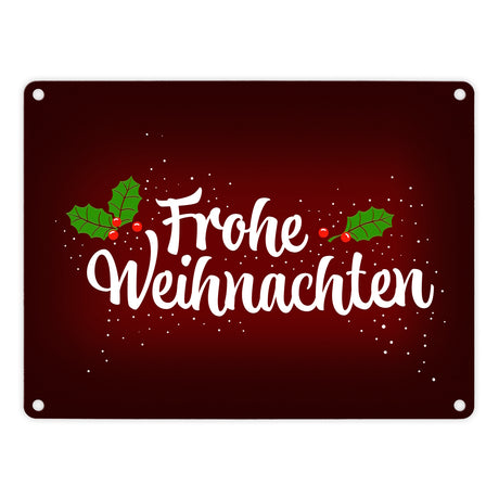 Frohe Weihnachten Metallschild mit Beeren und Blätter Motiv
