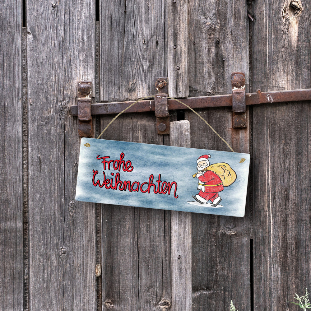 • Dieses schöne Metallschild mit der Aufschrift Frohe Weihnachten und einem süßen Nikolaus ist die perfekte Dekoration in der Advents- und Weihnachtszeit.