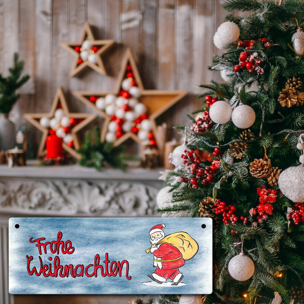 • 1x Frohe Weihnachten Metallschild mit Nikolaus und blauem Hintergrund in der gewählten Größe