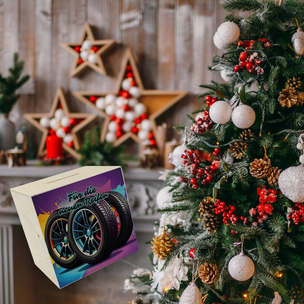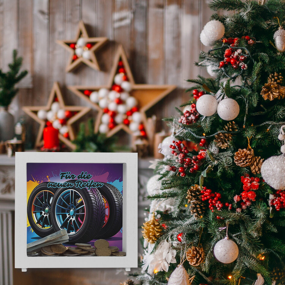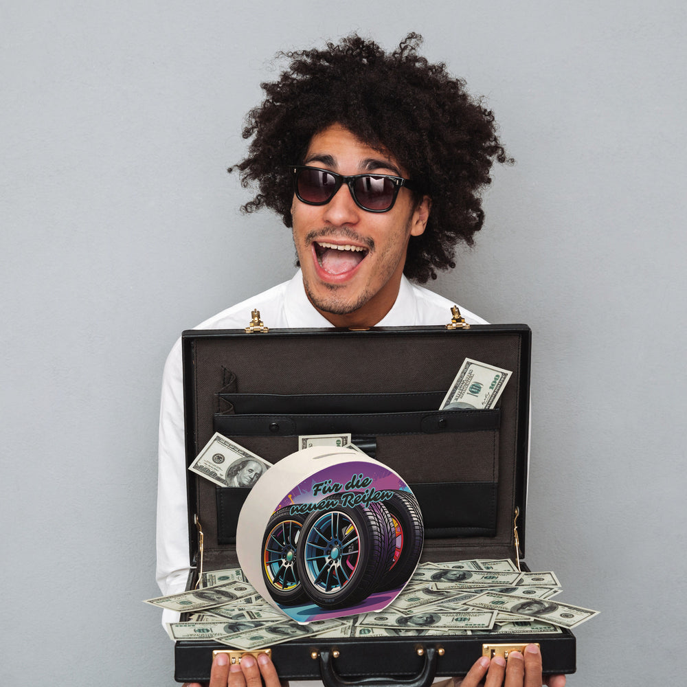 - 1x Für die neuen Reifen Spardose in der gewählten Ausführung