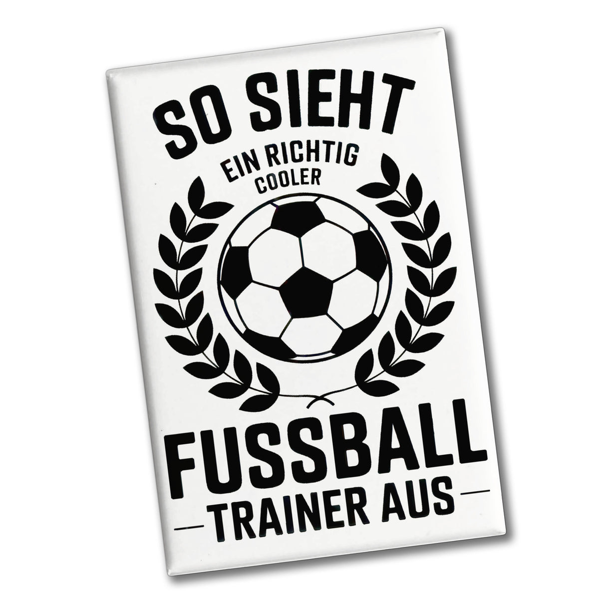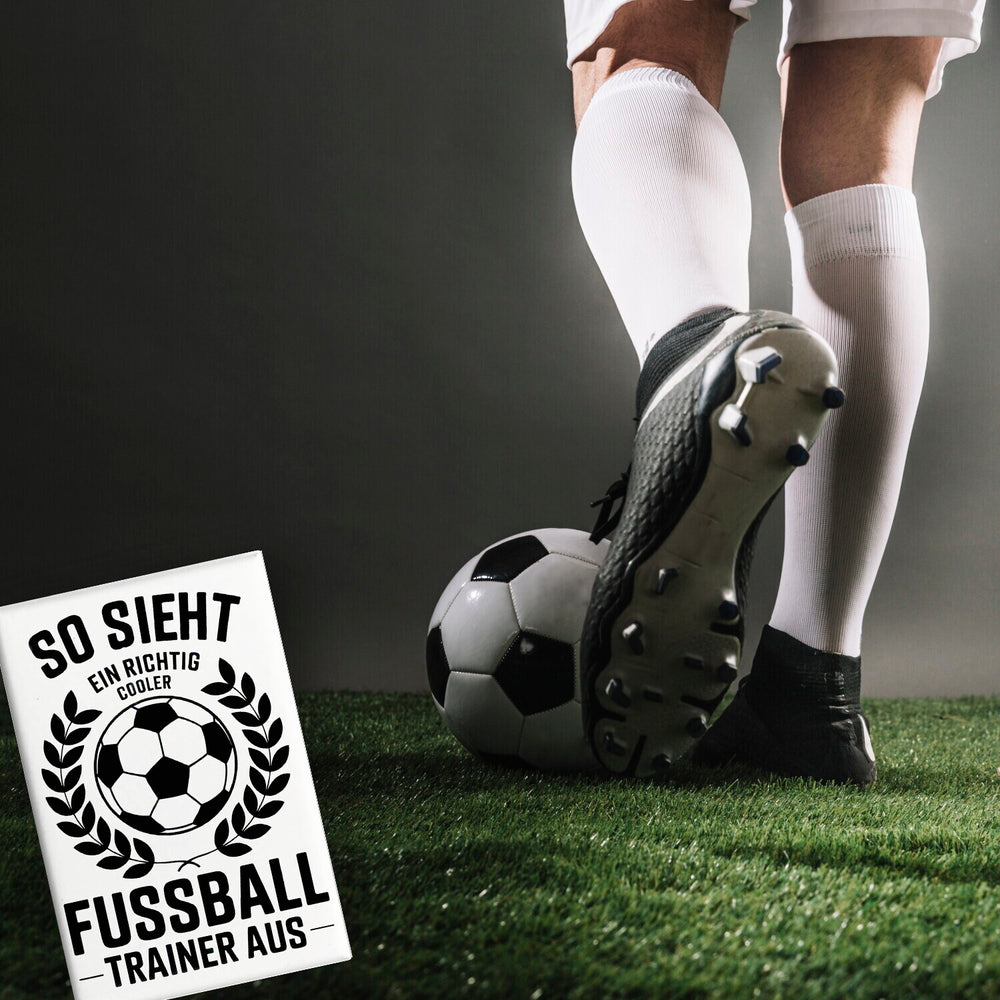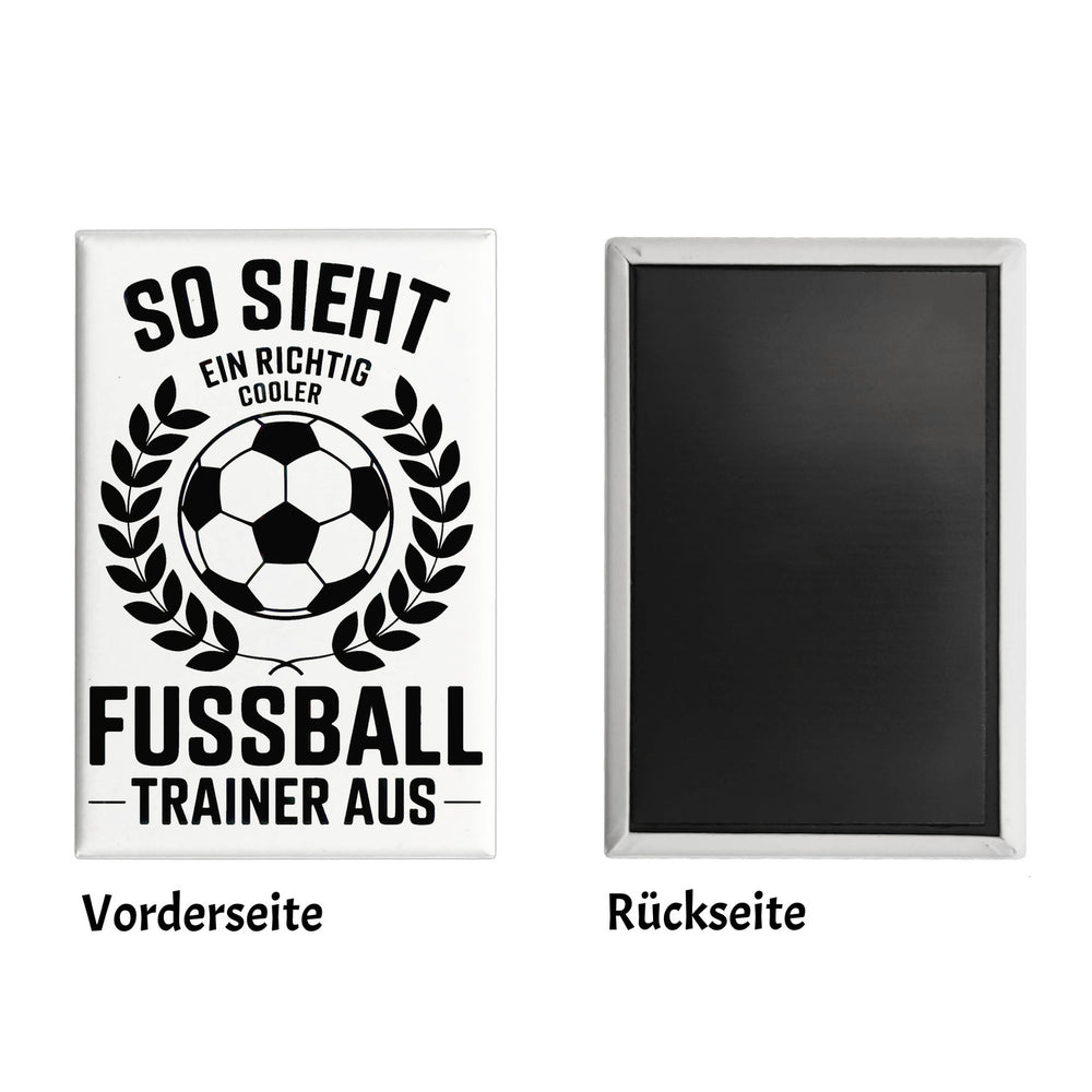 - Der rechteckige Magnet beeindruckt mit einem klassischen Fußball, umgeben von einem majestätischen Lorbeerkranz. Der Text "SO SIEHT EIN RICHTIG COOLER FUSSBALL TRAINER AUS" in fetten schwarzen Buchstaben krönt den Look. Ideal für alle, die ihren Trainergeist nicht nur auf dem Spielfeld, sondern auch daheim zeigen möchten!